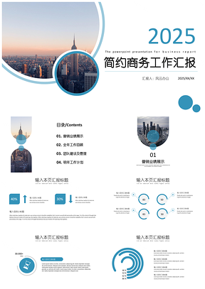 2025工作计划蓝色简约商务工作汇报PPT模板