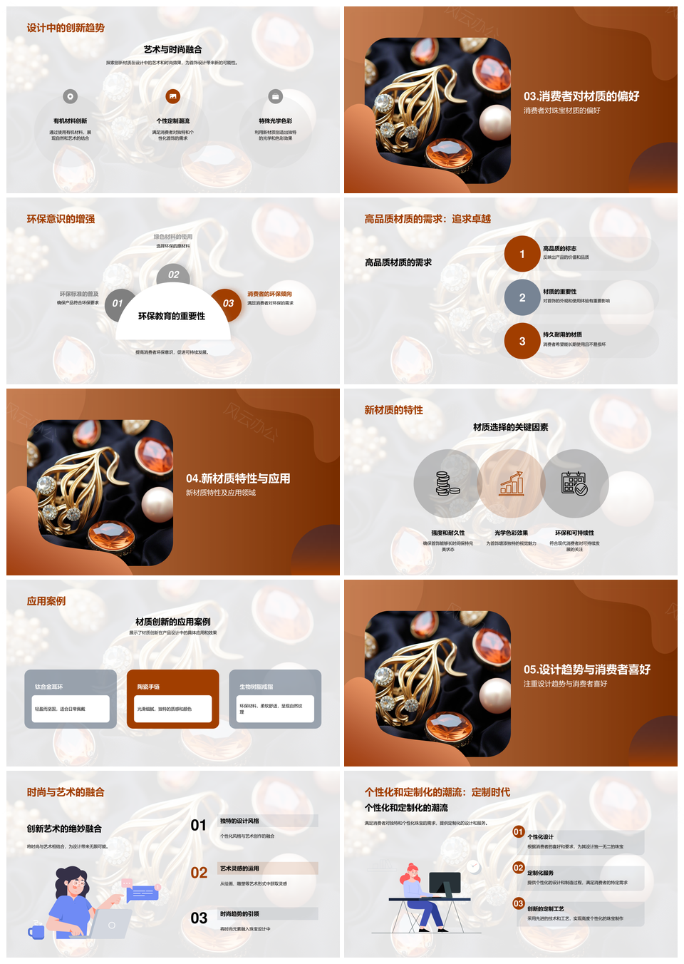 这是一张珠宝材质创新古今融合设计新趋势PPT模板,包含珠宝、材质、创新、古今、融合、设计、新趋势等主题内容,也可用作创新古今融合设计、古今融合设计新趋势、珠宝材质创新、材质创新古今、创新古今融合、古今融合设计、融合设计新趋势、材质创新融合、创新融合设计、珠宝材质、材质创新、创新古今、古今融合、融合设计、设计新趋势等PPT场景使用。