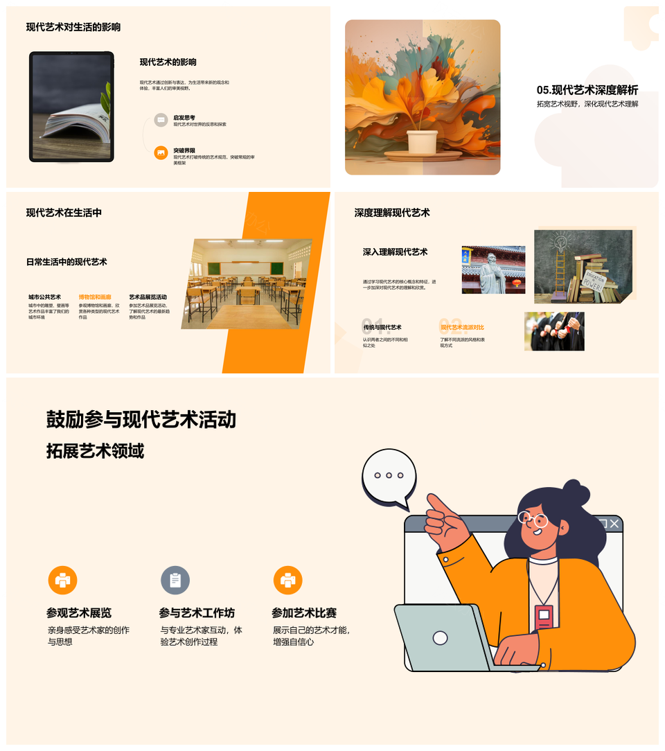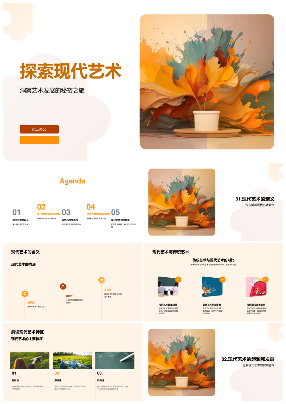 现代与传统艺术发展流派艺术家抽象作品PPT模板推荐
