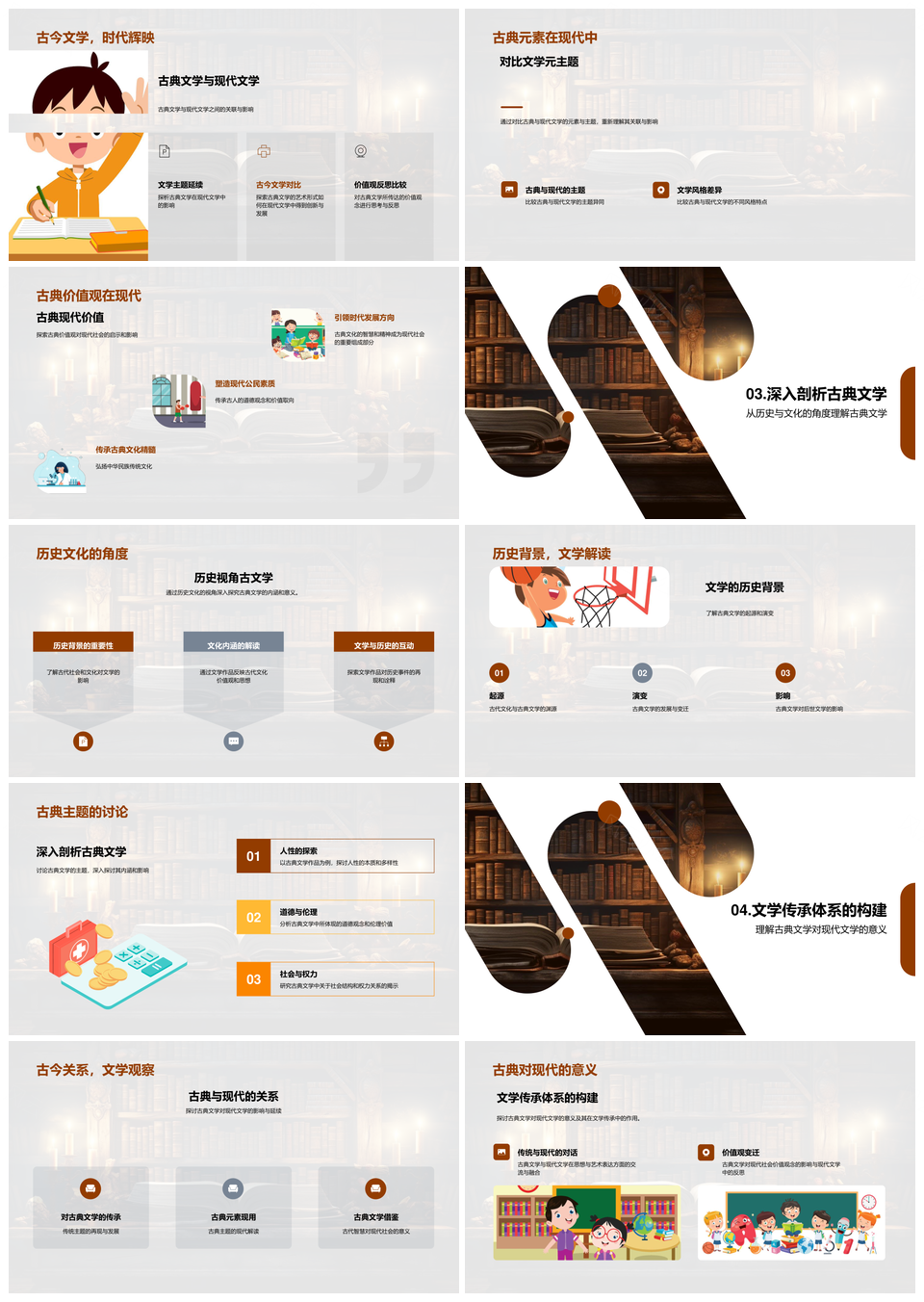风云办公提供的古今文学交织传承脉络与卷轴探析PPT模板,下载格式为pptx,一共23页,作品中文字及图均可以修改和编辑,图片更改请在作品中右键图片并更换,文字修改请直接点击文字进行修改。