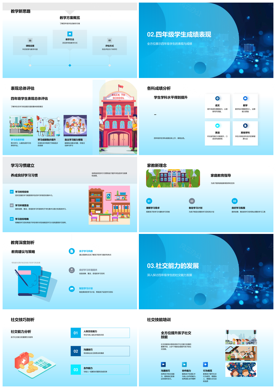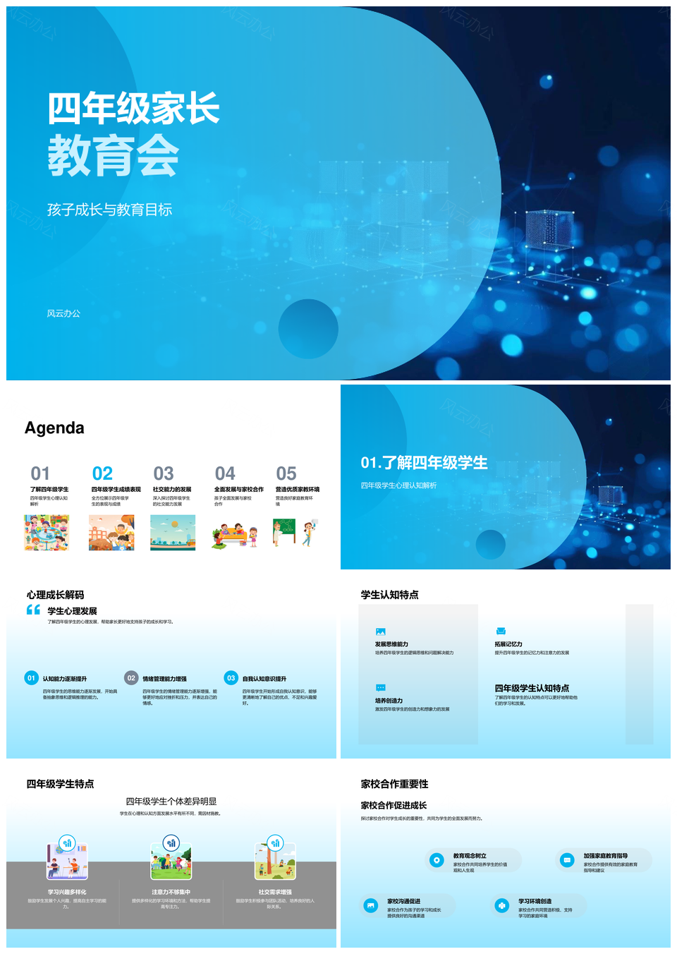 风云办公提供的四年级家长会家校合作共析各科成绩PPT模板,下载格式为pptx,一共33页,作品中文字及图均可以修改和编辑,图片更改请在作品中右键图片并更换,文字修改请直接点击文字进行修改。