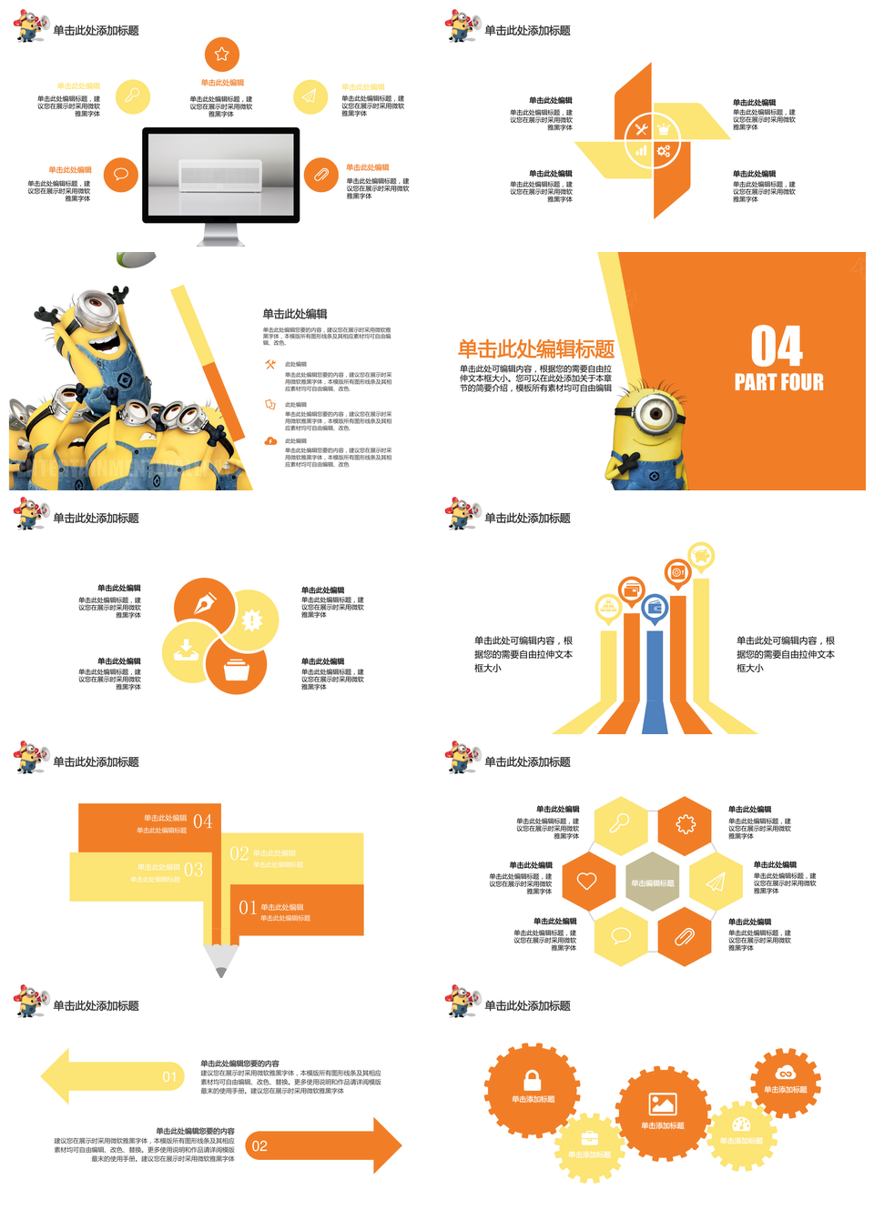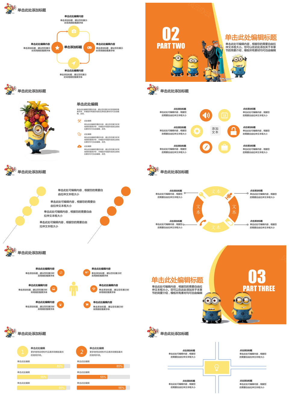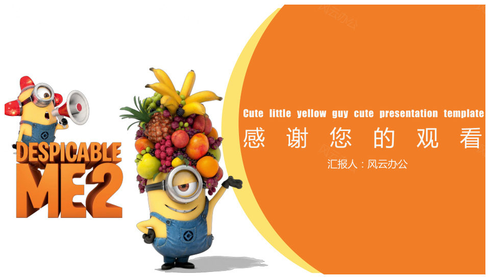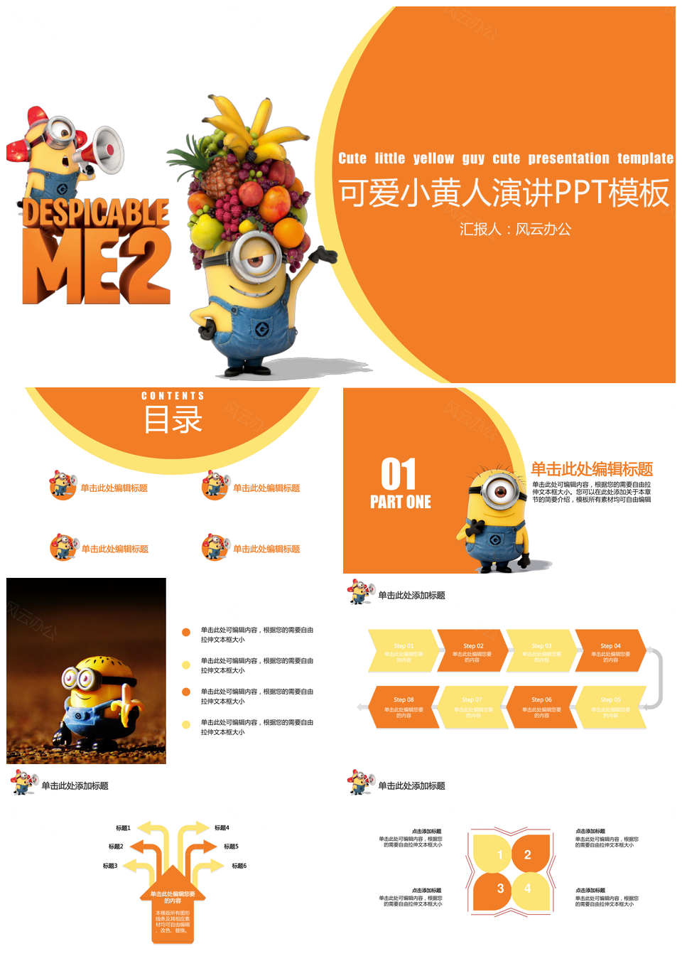 这是一张卡通可爱小黄人演讲PPT模板,包含卡通、可爱、小黄人、演讲等主题内容,也可用作卡通、可爱、小黄人、演讲 卡通可爱小黄人演讲、卡通可爱小黄人、可爱小黄人演讲、卡通小黄人演讲、卡通可爱、可爱小黄人、小黄人演讲、卡通小黄人、卡通演讲、可爱演讲等PPT场景使用。 风云办公提供的卡通可爱小黄人演讲PPT模板,下载格式为,一共27页,作品中文字及图均可以修改和编辑,图片更改请在作品中右键图片并更换,文字修改请直接点击文字进行修改。