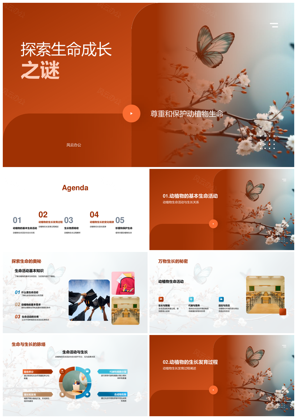 风云办公提供的探索动植物生命活动生长之谜PPT模板,下载格式为pptx,一共24页,作品中文字及图均可以修改和编辑,图片更改请在作品中右键图片并更换,文字修改请直接点击文字进行修改。