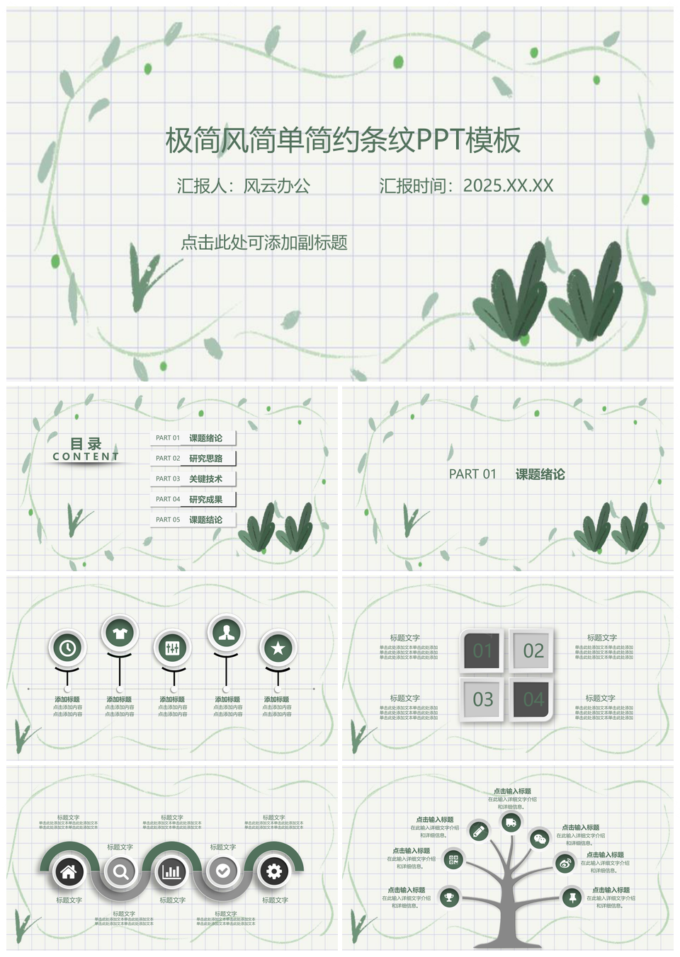 2025极简主义绿色简单简约小清新大气通用PPT模板