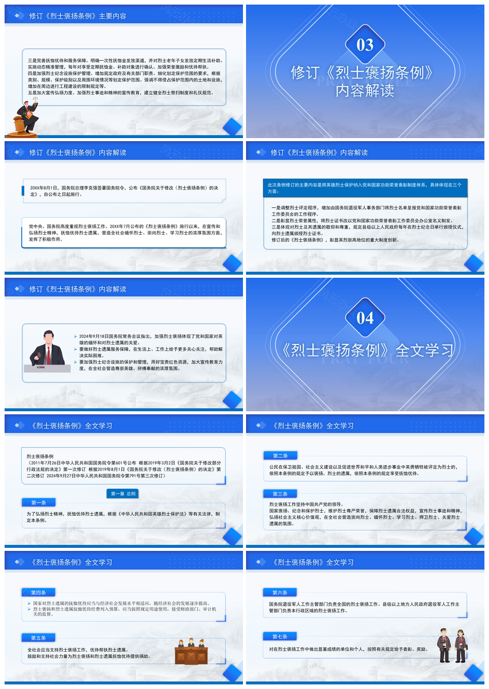 风云办公提供的2024新修订烈士褒扬条例解读全文PPT课件,下载格式为pptx,一共58页,作品中文字及图均可以修改和编辑,图片更改请在作品中右键图片并更换,文字修改请直接点击文字进行修改。