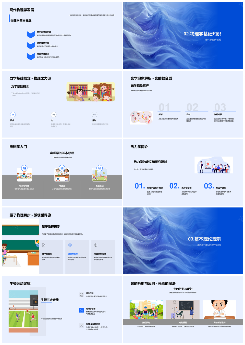 风云办公提供的物理力学光学电磁学基础理论实验PPT模板,下载格式为pptx,一共33页,作品中文字及图均可以修改和编辑,图片更改请在作品中右键图片并更换,文字修改请直接点击文字进行修改。