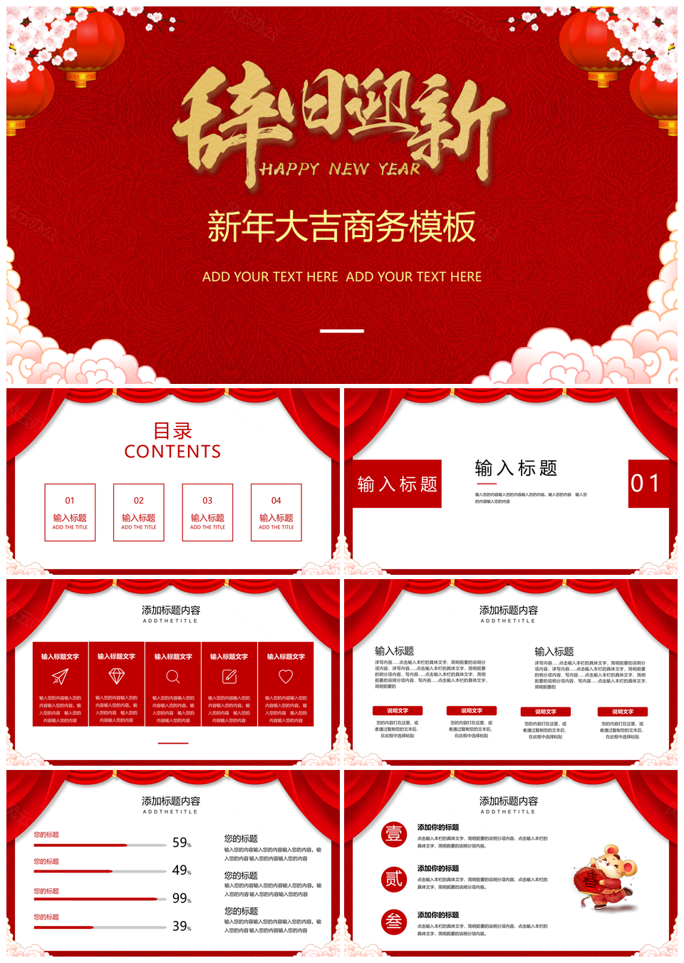 辞旧迎新新年大吉商务年终总结PPT模板推荐