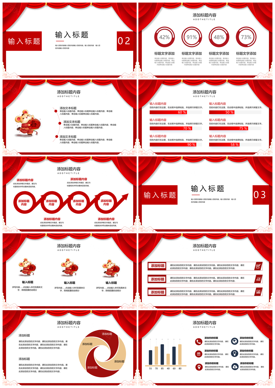 2025红色创意碎花商务年终总结动态通用PPT模板