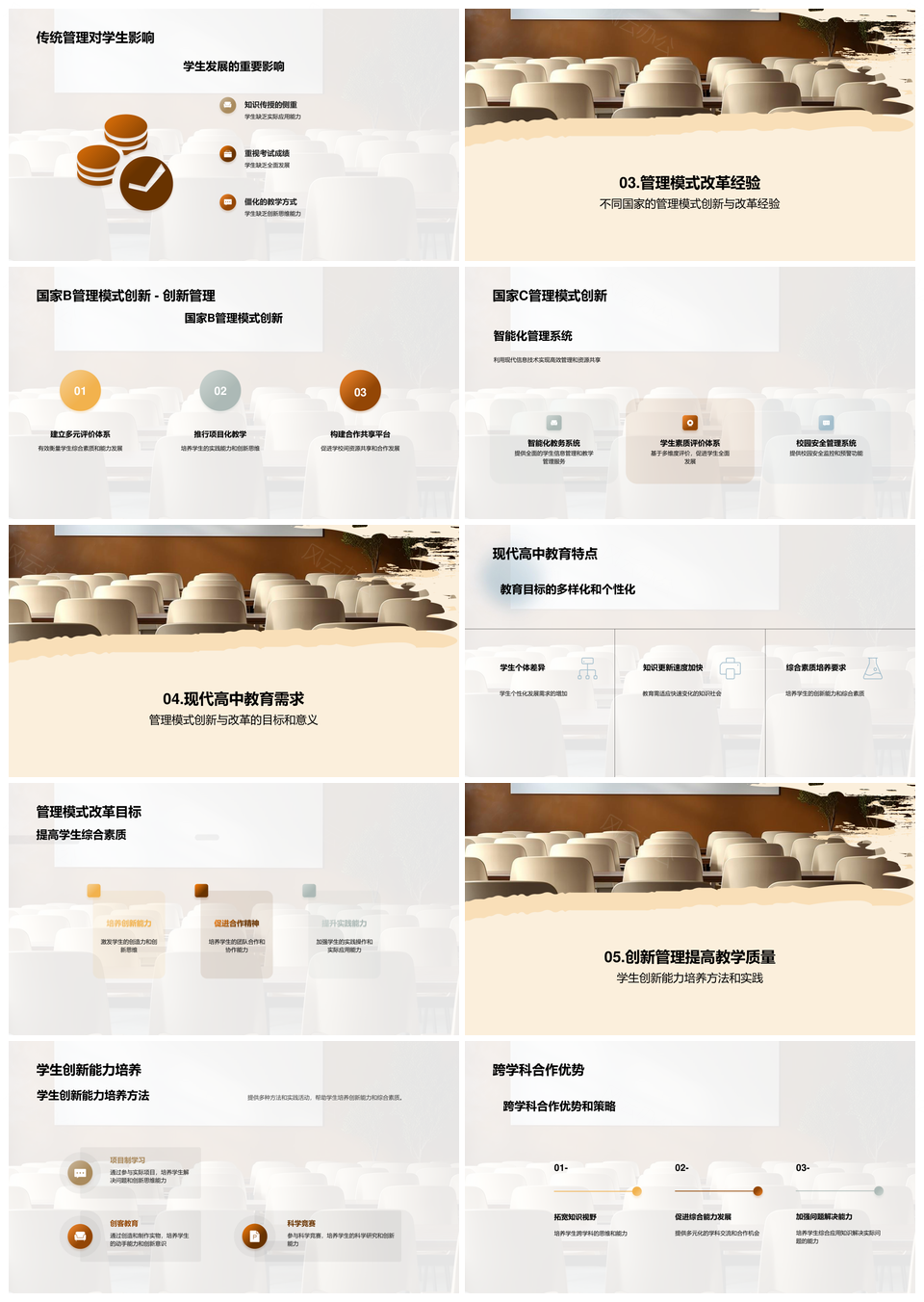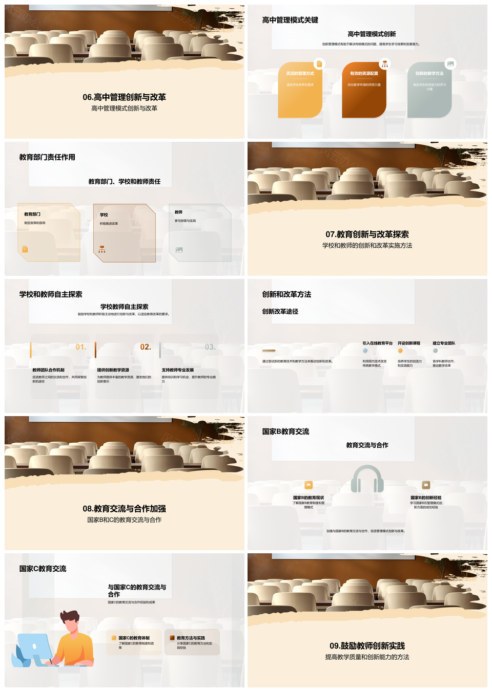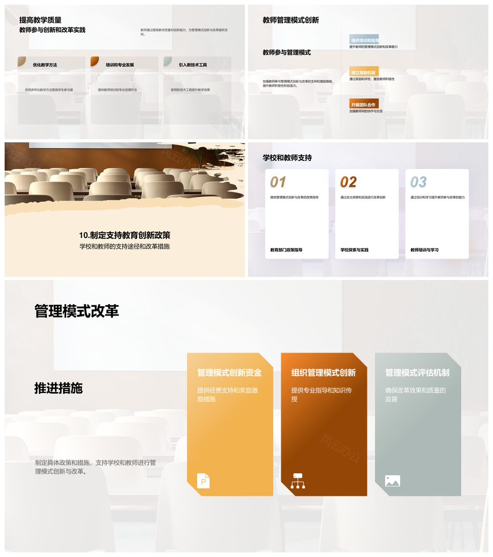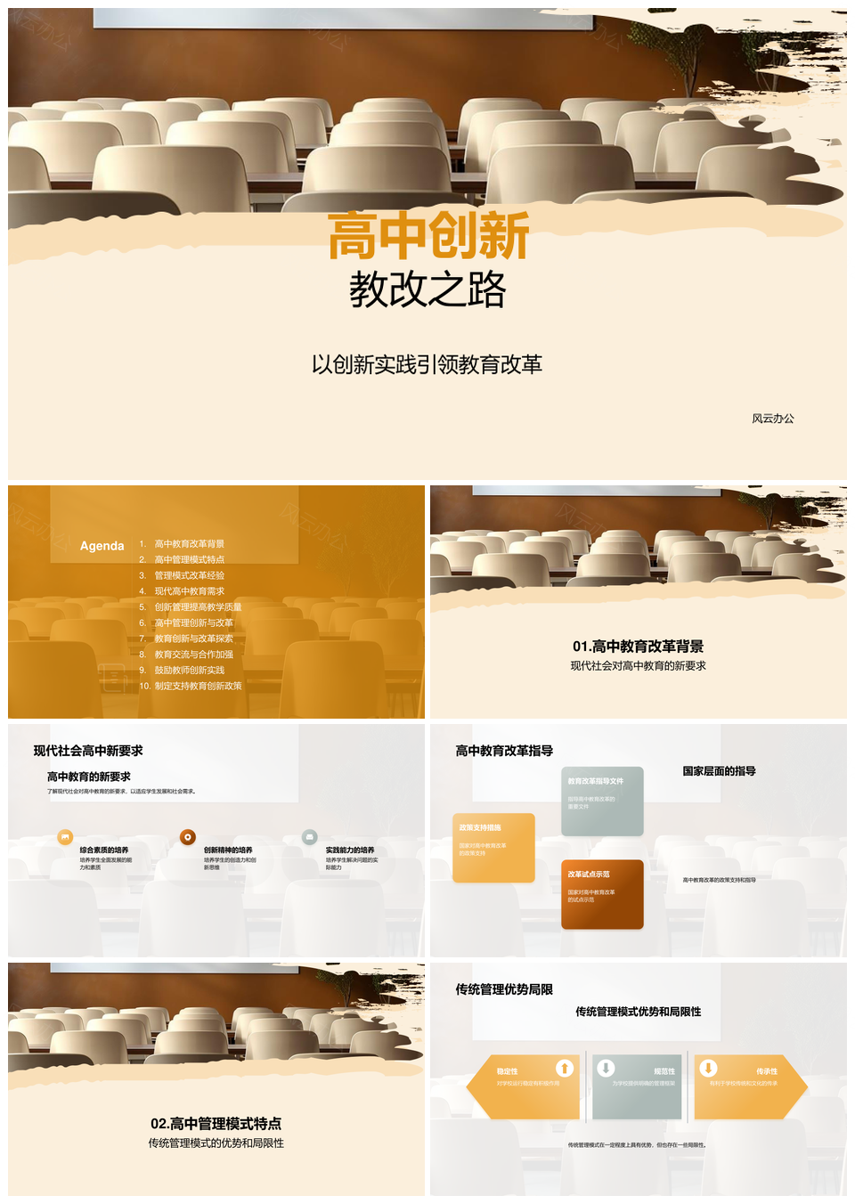 风云办公提供的高中教育管理创新携手未来改革PPT模板,下载格式为pptx,一共33页,作品中文字及图均可以修改和编辑,图片更改请在作品中右键图片并更换,文字修改请直接点击文字进行修改。