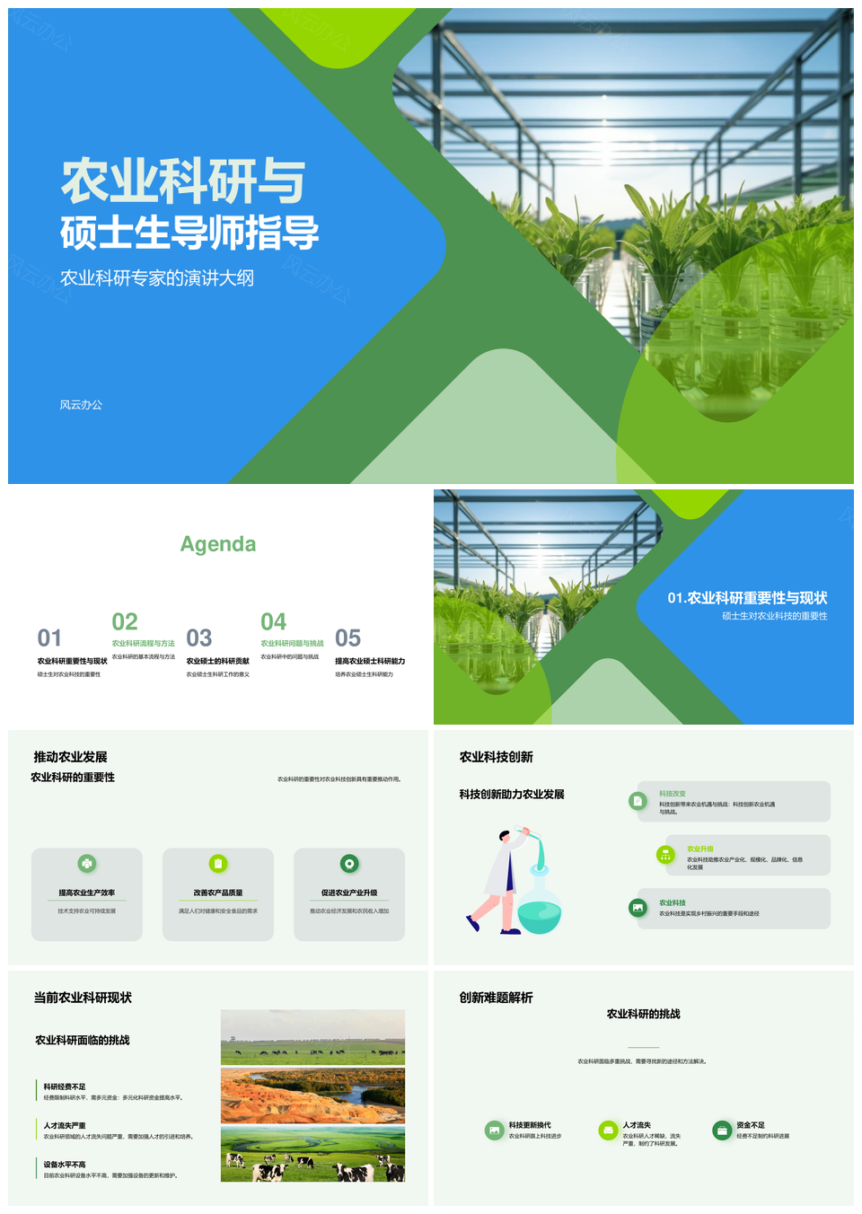 风云办公提供的农业科研导师指导硕士生科技创新PPT模板,下载格式为pptx,一共30页,作品中文字及图均可以修改和编辑,图片更改请在作品中右键图片并更换,文字修改请直接点击文字进行修改。