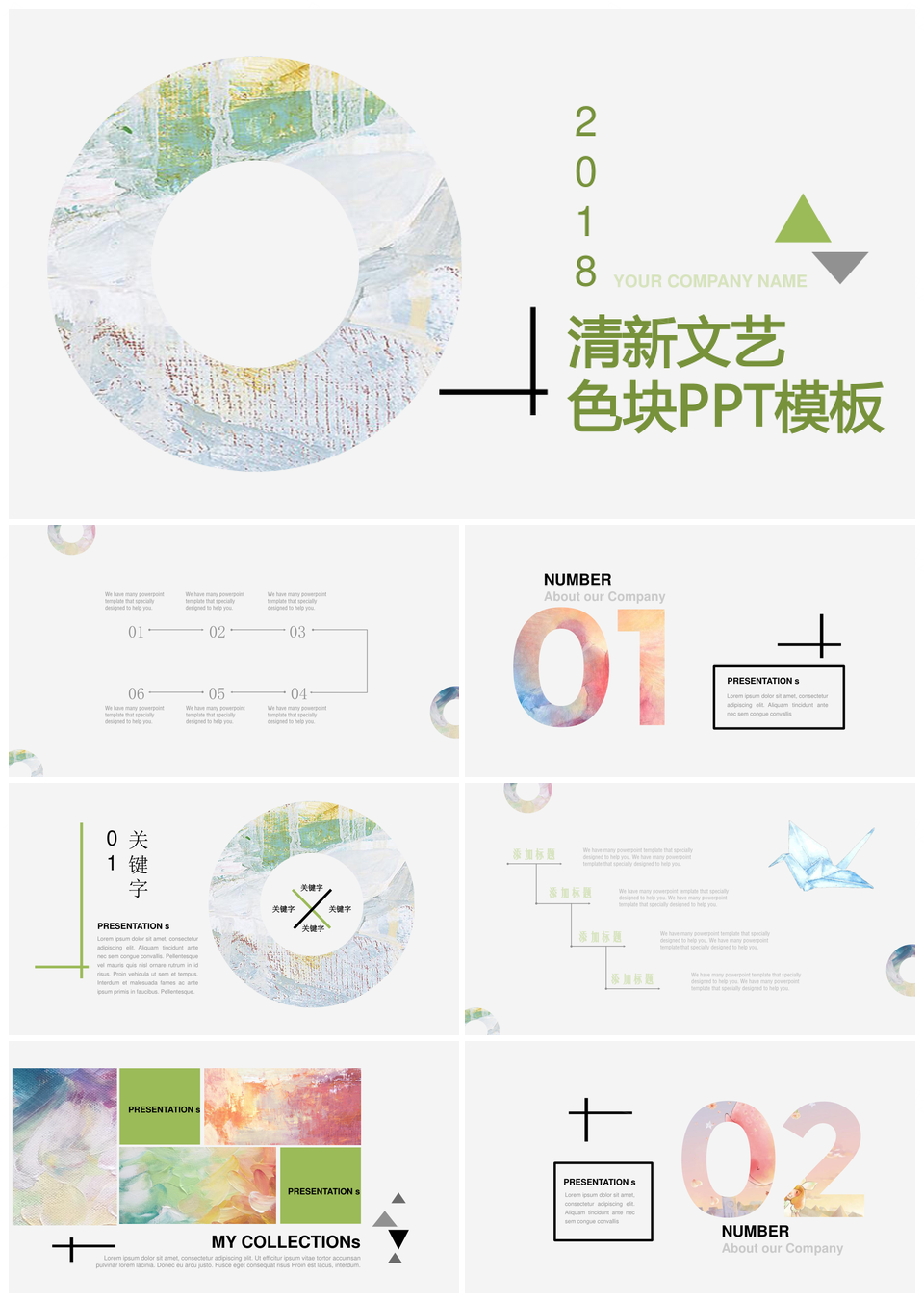 清新文艺色块PPT模板