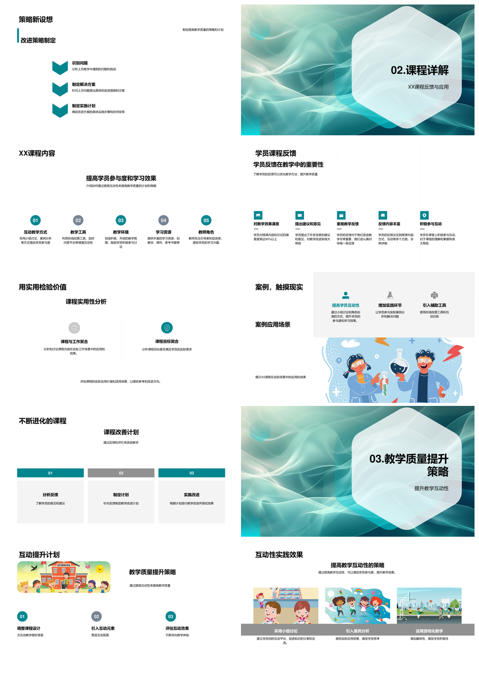 这是一张2025教学月度成果反馈互动提升经验共享汇报PPT模板,包含2025、教学、月度、成果、反馈、互动、提升、经验、共享、汇报等主题内容,也可用作2025教学成果反馈互动、教学月度成果反馈互动、成果反馈互动提升、反馈互动提升经验、互动提升经验共享、提升经验共享汇报、教学月度成果共享、2025教学互动提升、月度成果共享汇报、教学反馈提升经验、成果互动共享汇报、互动经验共享汇报、教学成果经验共享、月度反馈提升共享、教学互动经验提升等PPT场景使用。 风云办公提供的2025教学月度成果反馈互动提升经验共享汇报PPT模板,下载格式为pptx,一共33页,作品中文字及图均可以修改和编辑,图片更改请在作品中右键图片并更换,文字修改请直接点击文字进行修改。