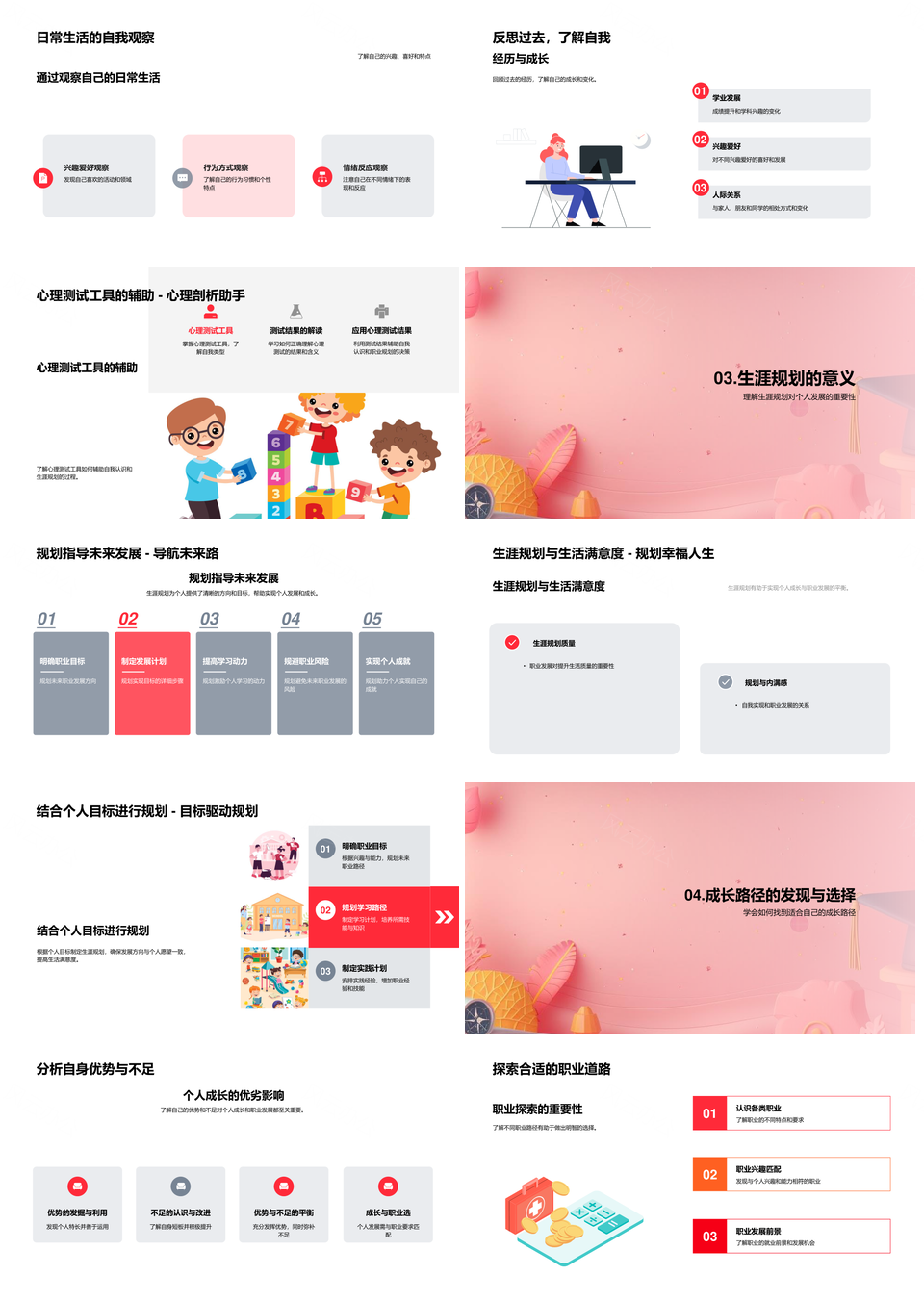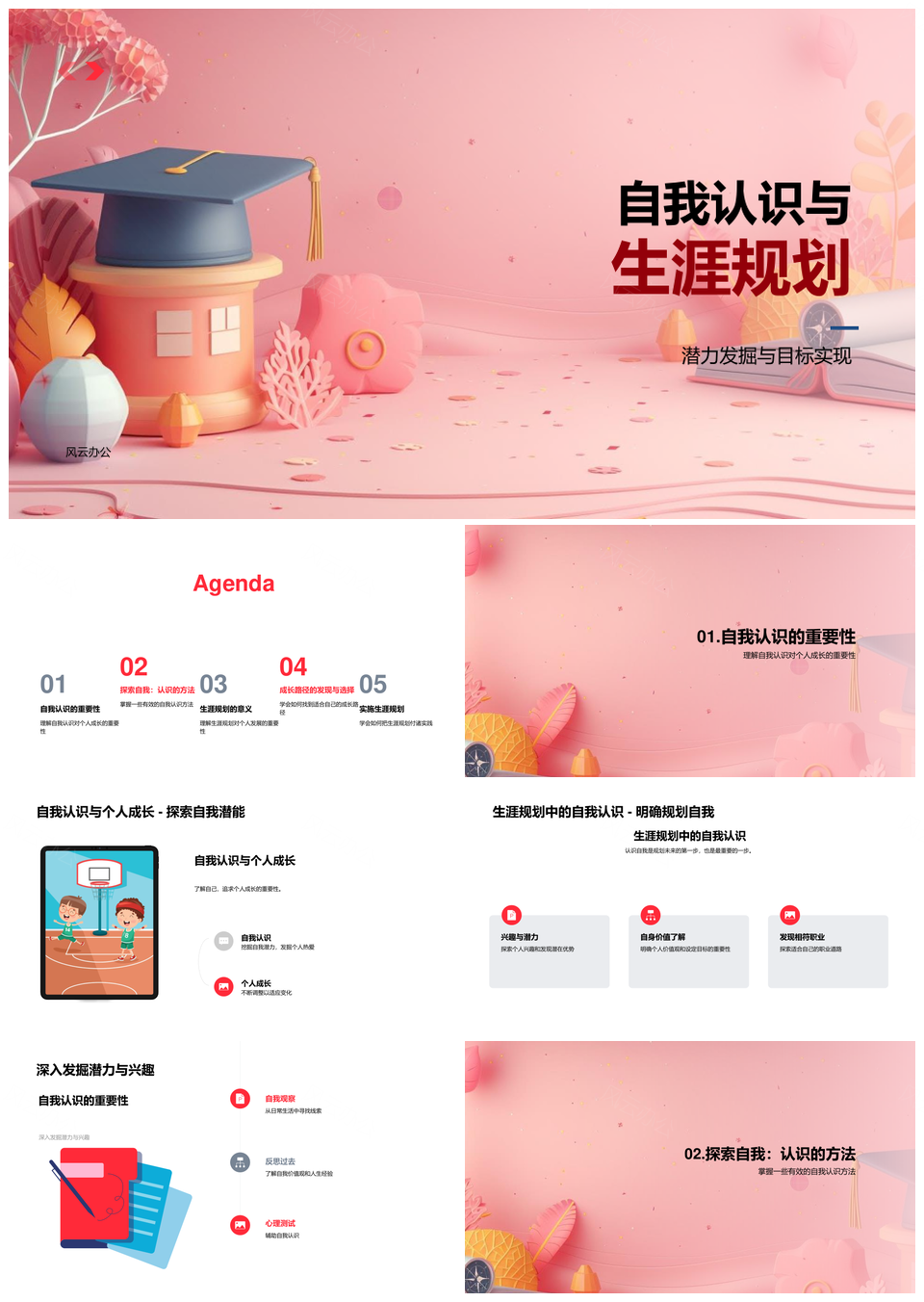 这是一张自我认识生涯规划潜力发掘实现成长目标PPT模板,包含自我认识、生涯规划、潜力发掘、实现成长、目标等主题内容,也可用作自我认识生涯规划潜力发掘、潜力发掘实现成长目标、生涯规划潜力发掘实现、规划潜力发掘实现成长、潜力发掘实现成长目标、自我认识生涯规划潜力、认识生涯规划潜力发掘、生涯规划潜力发掘实现、规划潜力发掘实现成长、潜力发掘实现成长目标、自我认识生涯规划、生涯规划潜力发掘、规划潜力发掘实现、潜力发掘实现成长、实现成长目标等PPT场景使用。 风云办公提供的自我认识生涯规划潜力发掘实现成长目标PPT模板,下载格式为pptx,一共23页,作品中文字及图均可以修改和编辑,图片更改请在作品中右键图片并更换,文字修改请直接点击文字进行修改。