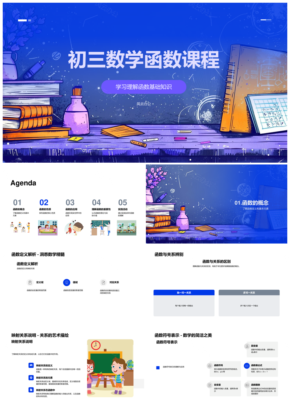 风云办公提供的初三数学函数概念性质应用课程PPT模板,下载格式为pptx,一共33页,作品中文字及图均可以修改和编辑,图片更改请在作品中右键图片并更换,文字修改请直接点击文字进行修改。