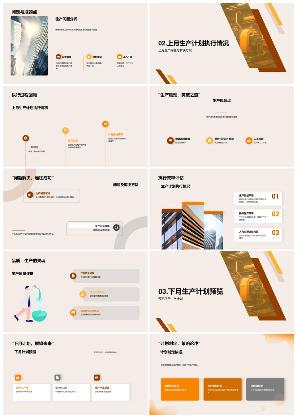 工业机械生产策略计划问题解决优化措施月度梳理PPT模板推荐