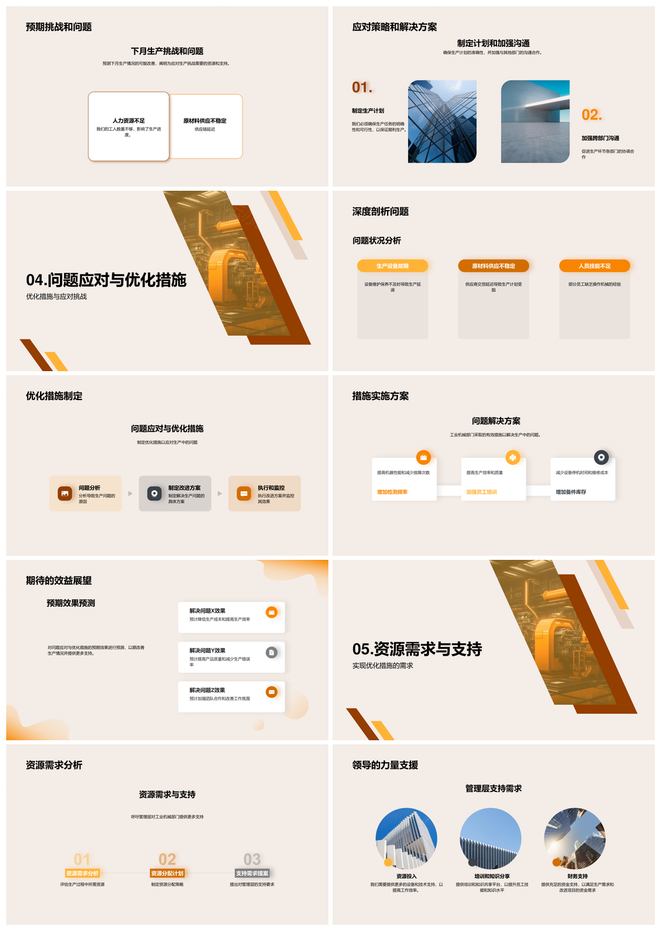 这是一张工业机械生产策略计划问题解决优化措施月度梳理PPT模板,包含工业、机械、生产、策略、计划、问题、解决、优化、措施、月度、梳理等主题内容,也可用作工业机械生产策略、机械生产策略计划、生产策略计划问题、策略计划问题解决、计划问题解决优化、问题解决优化措施、解决优化措施月度、优化措施月度梳理、工业机械生产、机械生产策略、生产策略计划、策略计划问题、计划问题解决、问题解决优化、解决优化措施等PPT场景使用。 风云办公提供的工业机械生产策略计划问题解决优化措施月度梳理PPT模板,下载格式为pptx,一共30页,作品中文字及图均可以修改和编辑,图片更改请在作品中右键图片并更换,文字修改请直接点击文字进行修改。