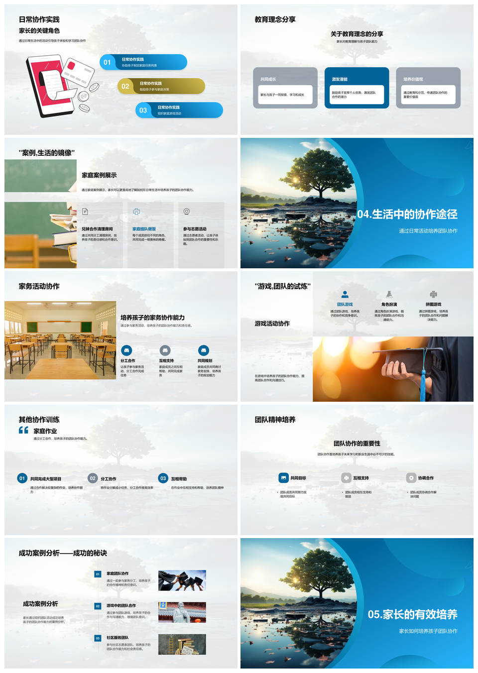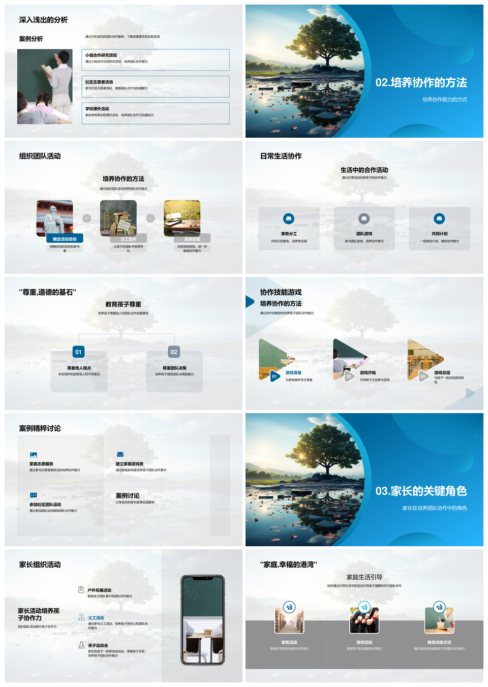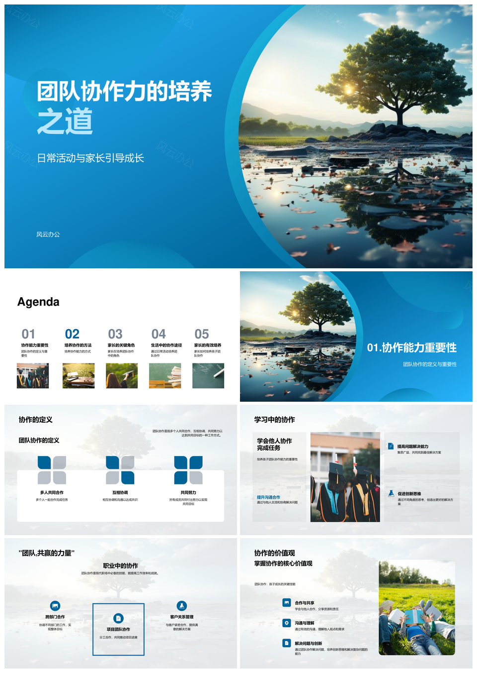 风云办公提供的家长日常活动培养孩子团队协作能力PPT模板,下载格式为pptx,一共33页,作品中文字及图均可以修改和编辑,图片更改请在作品中右键图片并更换,文字修改请直接点击文字进行修改。