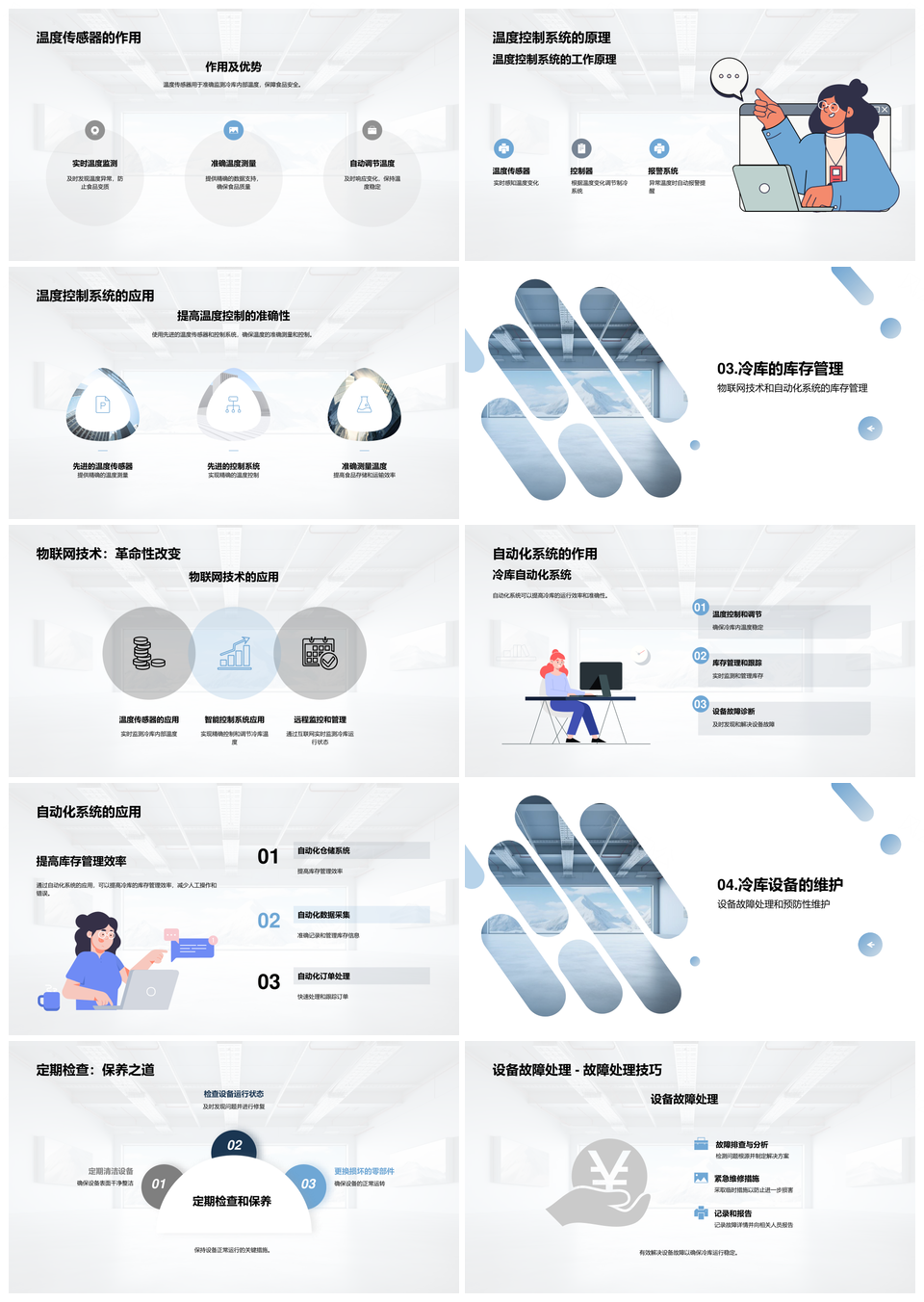 这是一张智能冷链冷库物联网自动化温控库存管理PPT模板,包含智能、冷链、冷库、物联网、自动化、温控、库存管理等主题内容,也可用作智能冷链冷库物联网、冷链冷库物联网自动化、冷库物联网自动化温控、物联网自动化温控库存管理、智能冷链冷库、冷链冷库物联网、冷库物联网自动化、物联网自动化温控、自动化温控库存管理、智能冷链、冷链冷库、冷库物联网、物联网自动化、自动化温控、温控库存管理等PPT场景使用。 风云办公提供的智能冷链冷库物联网自动化温控库存管理PPT模板,下载格式为pptx,一共28页,作品中文字及图均可以修改和编辑,图片更改请在作品中右键图片并更换,文字修改请直接点击文字进行修改。