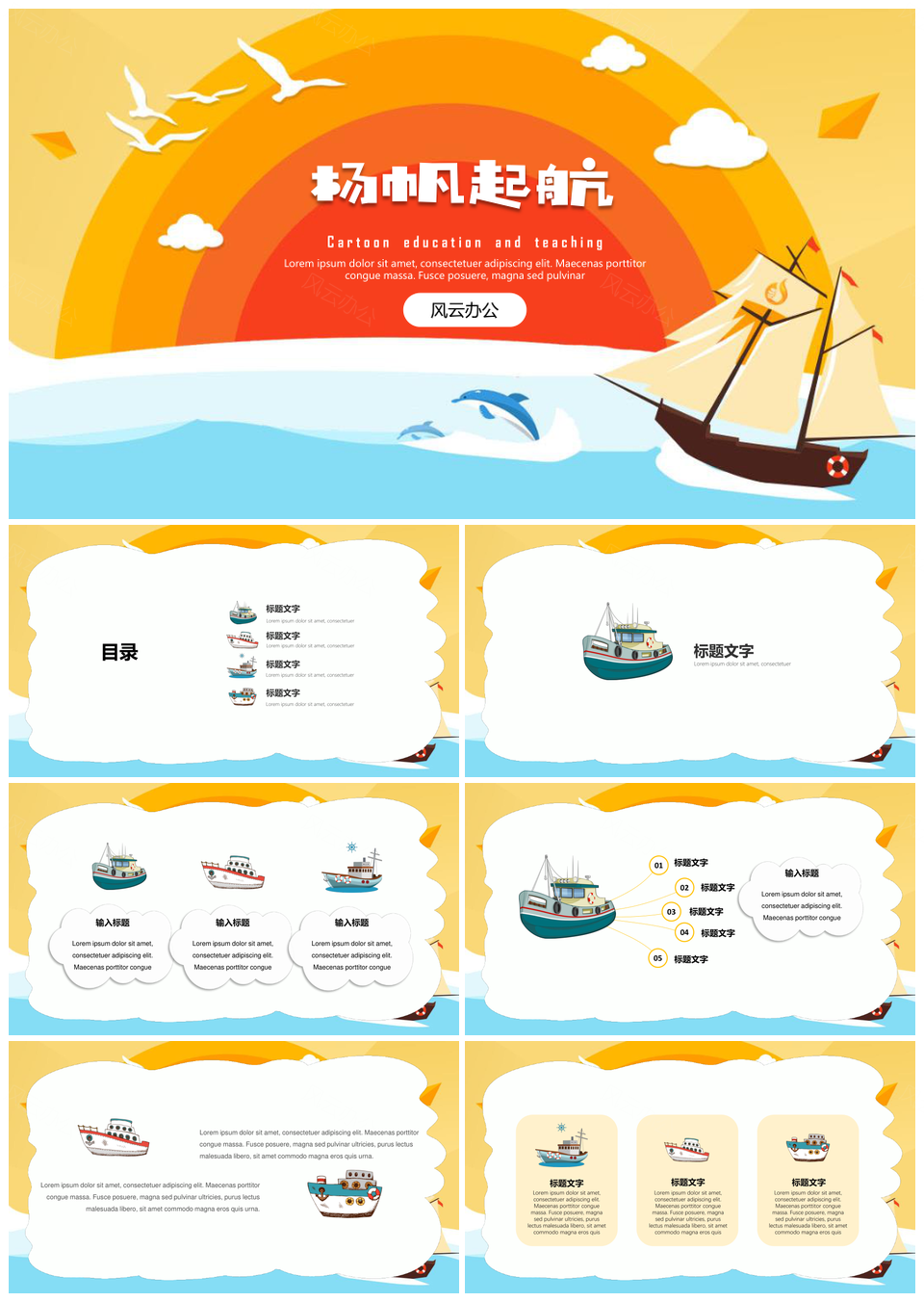这是一张黄色教育教可爱卡通杨帆起航通用PPT模板,包含黄色教育、可爱卡通、杨帆起航等主题内容,也可用作黄色教育可爱卡通、教育可爱卡通杨帆起航、可爱卡通杨帆起航通用、黄色教育可爱、可爱卡通杨帆起航、卡通杨帆起航通用、黄色教育、教育可爱、可爱卡通、卡通杨帆起航、杨帆起航通用等PPT场景使用。 风云办公提供的黄色教育教可爱卡通杨帆起航通用PPT模板,下载格式为pptx,一共7页,作品中文字及图均可以修改和编辑,图片更改请在作品中右键图片并更换,文字修改请直接点击文字进行修改。