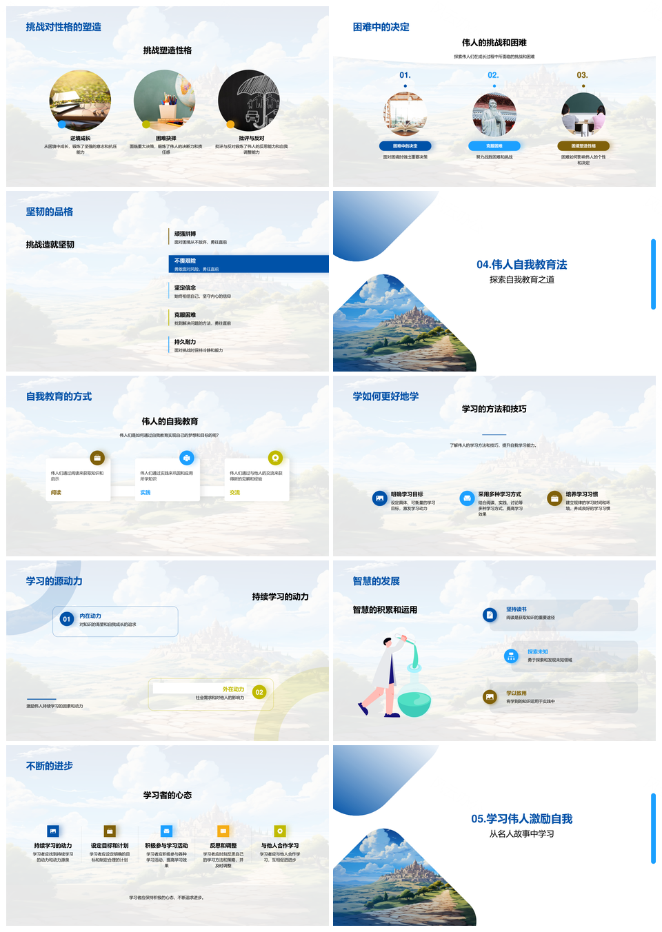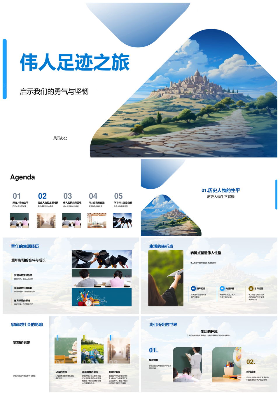 风云办公提供的伟人足迹家世自学成才人生轨迹PPT模板,下载格式为pptx,一共33页,作品中文字及图均可以修改和编辑,图片更改请在作品中右键图片并更换,文字修改请直接点击文字进行修改。