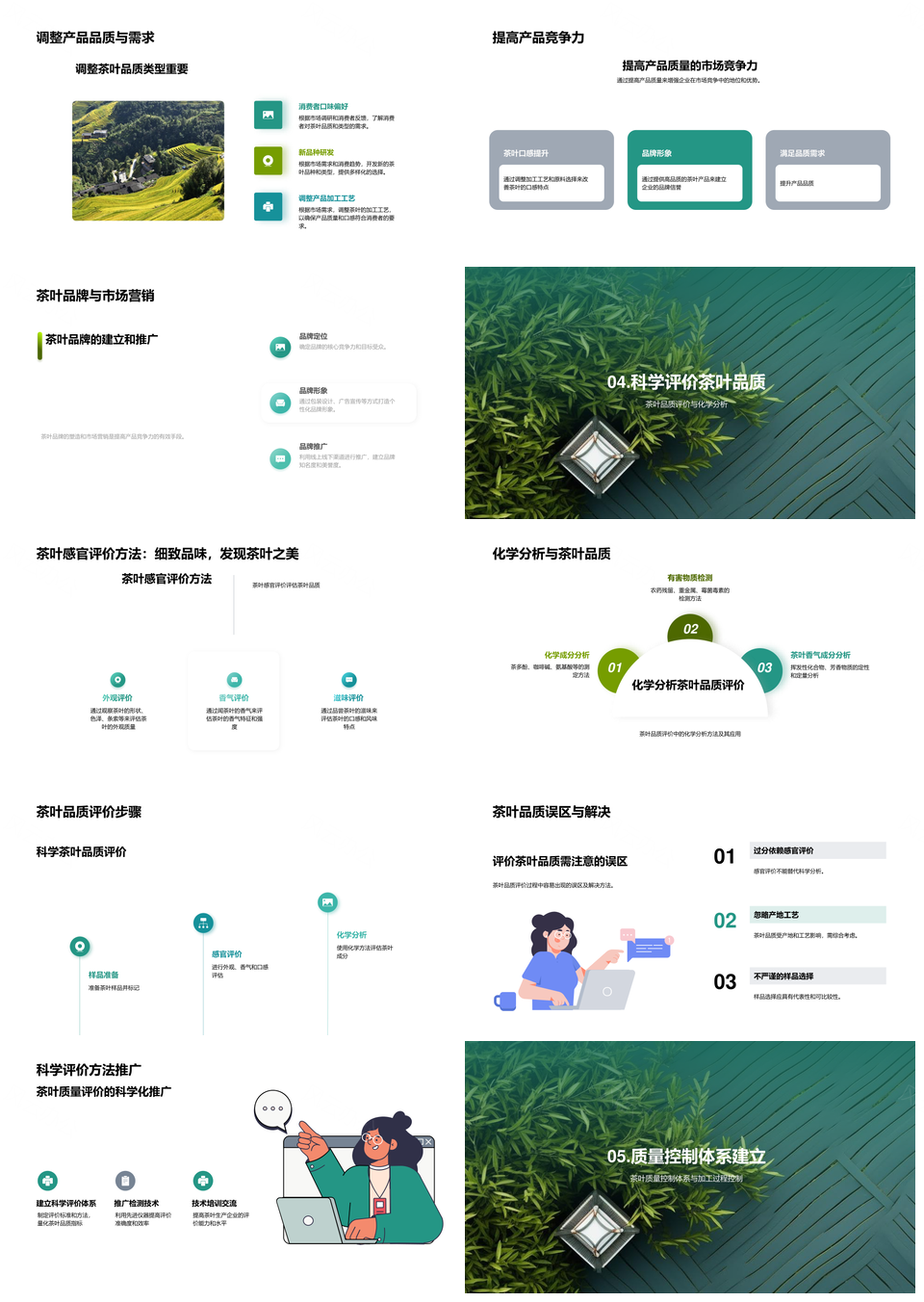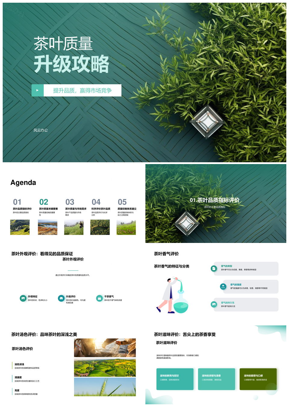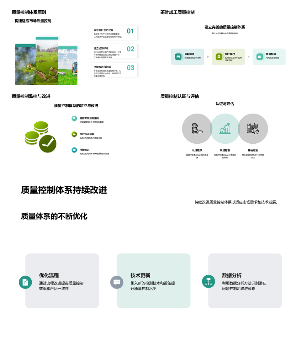 这是一张茶叶品质提升生产企业管理质量指标感官化学分析PPT模板,包含茶叶品质、提升、生产企业、管理、质量指标、感官、化学分析等主题内容,也可用作茶叶品质提升生产企业管理质量指标、茶叶品质提升生产企业管理、提升生产企业管理质量指标、生产企业管理质量指标感官、企业管理质量指标感官化学分析、质量指标感官化学分析、茶叶品质提升生产企业、提升生产企业管理质量、生产企业管理质量指标、企业管理质量指标感官、质量指标感官化学、茶叶品质提升生产、提升生产企业质量、生产企业质量指标、质量指标感官分析等PPT场景使用。 风云办公提供的茶叶品质提升生产企业管理质量指标感官化学分析PPT模板,下载格式为pptx,一共33页,作品中文字及图均可以修改和编辑,图片更改请在作品中右键图片并更换,文字修改请直接点击文字进行修改。