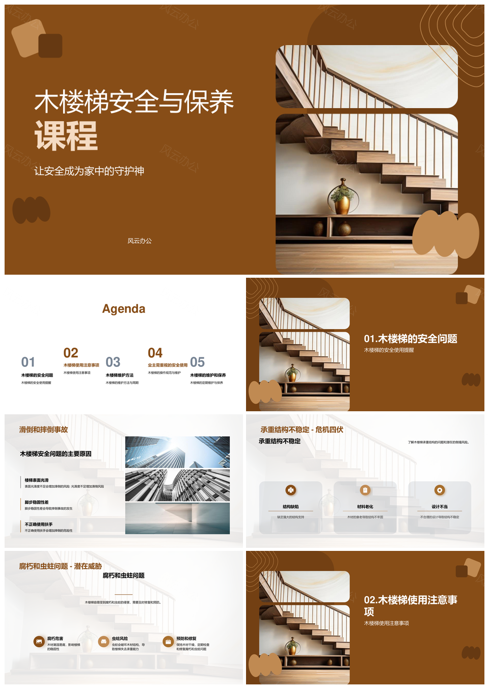 风云办公提供的木楼梯安全维护防滑承重防腐防倒塌PPT模板,下载格式为pptx,一共23页,作品中文字及图均可以修改和编辑,图片更改请在作品中右键图片并更换,文字修改请直接点击文字进行修改。