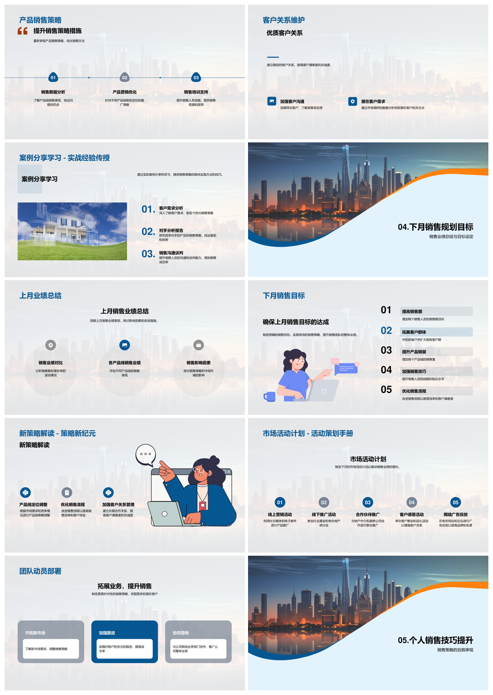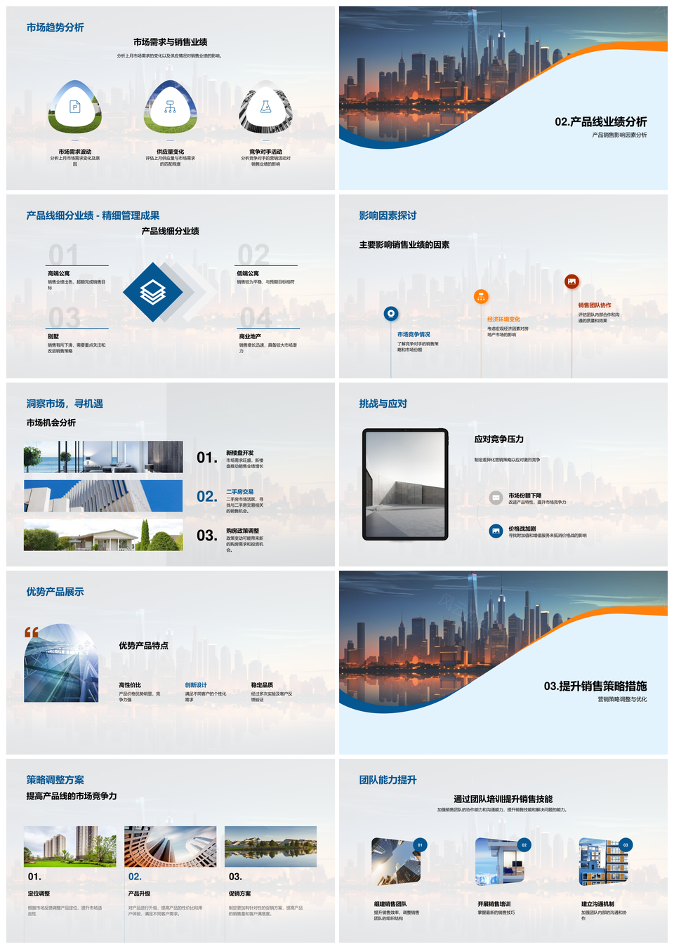 风云办公提供的房产销售月度业绩分析及策略优化总结PPT模板,下载格式为pptx,一共33页,作品中文字及图均可以修改和编辑,图片更改请在作品中右键图片并更换,文字修改请直接点击文字进行修改。