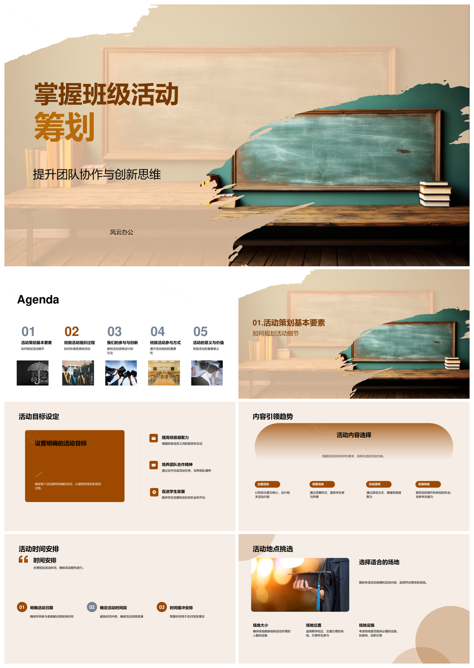 班级活动筹划协作创新策划目标内容时空安排PPT模板推荐