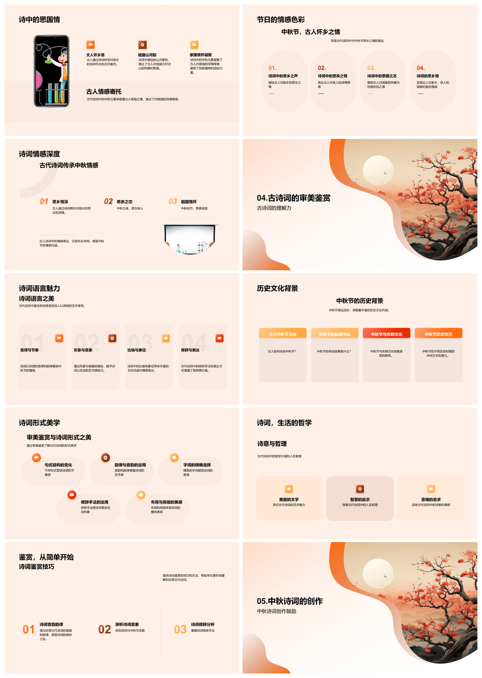 这是一张2025中秋诗词古典意象中的思亲怀远PPT模板,包含2025、中秋、诗词、古典意象、思亲怀远等主题内容,也可用作2025中秋诗词古典意象、诗词古典意象思亲怀远、古典诗词意象、古典意象思亲怀远、2025中秋古典诗词、2025中秋古典思亲怀远、诗词古典意象、诗词意象思亲怀远、古典诗词思亲怀远、2025中秋诗词意象、2025中秋思亲怀远、诗词古典、古典意象、诗词思亲怀远、意象思亲怀远等PPT场景使用。 风云办公提供的2025中秋诗词古典意象中的思亲怀远PPT模板,下载格式为pptx,一共33页,作品中文字及图均可以修改和编辑,图片更改请在作品中右键图片并更换,文字修改请直接点击文字进行修改。