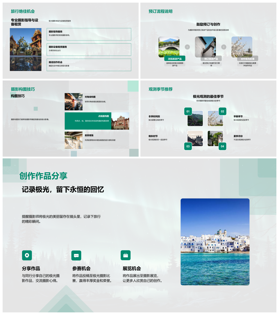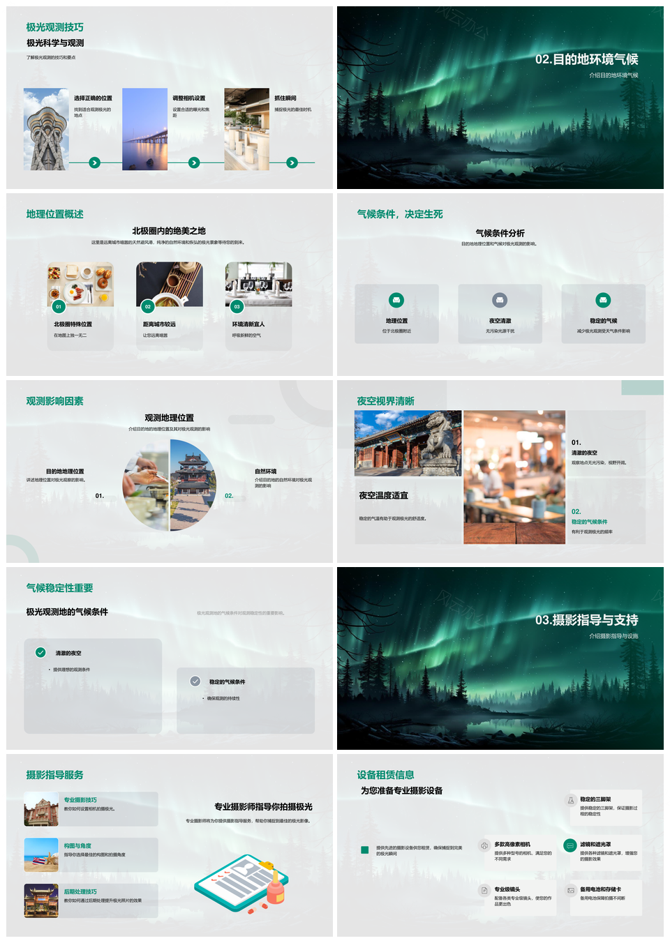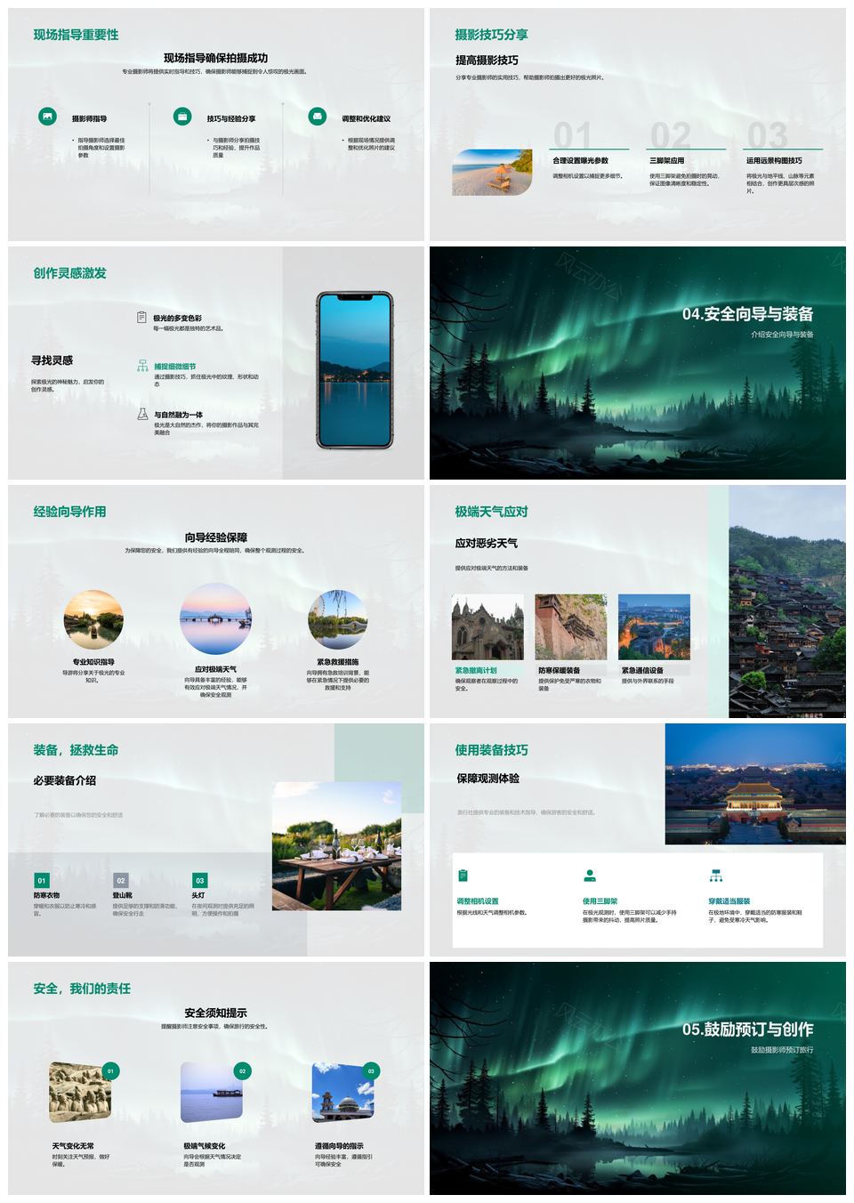 极光科学摄影安全旅游设备租赁指导服务PPT模板推荐
