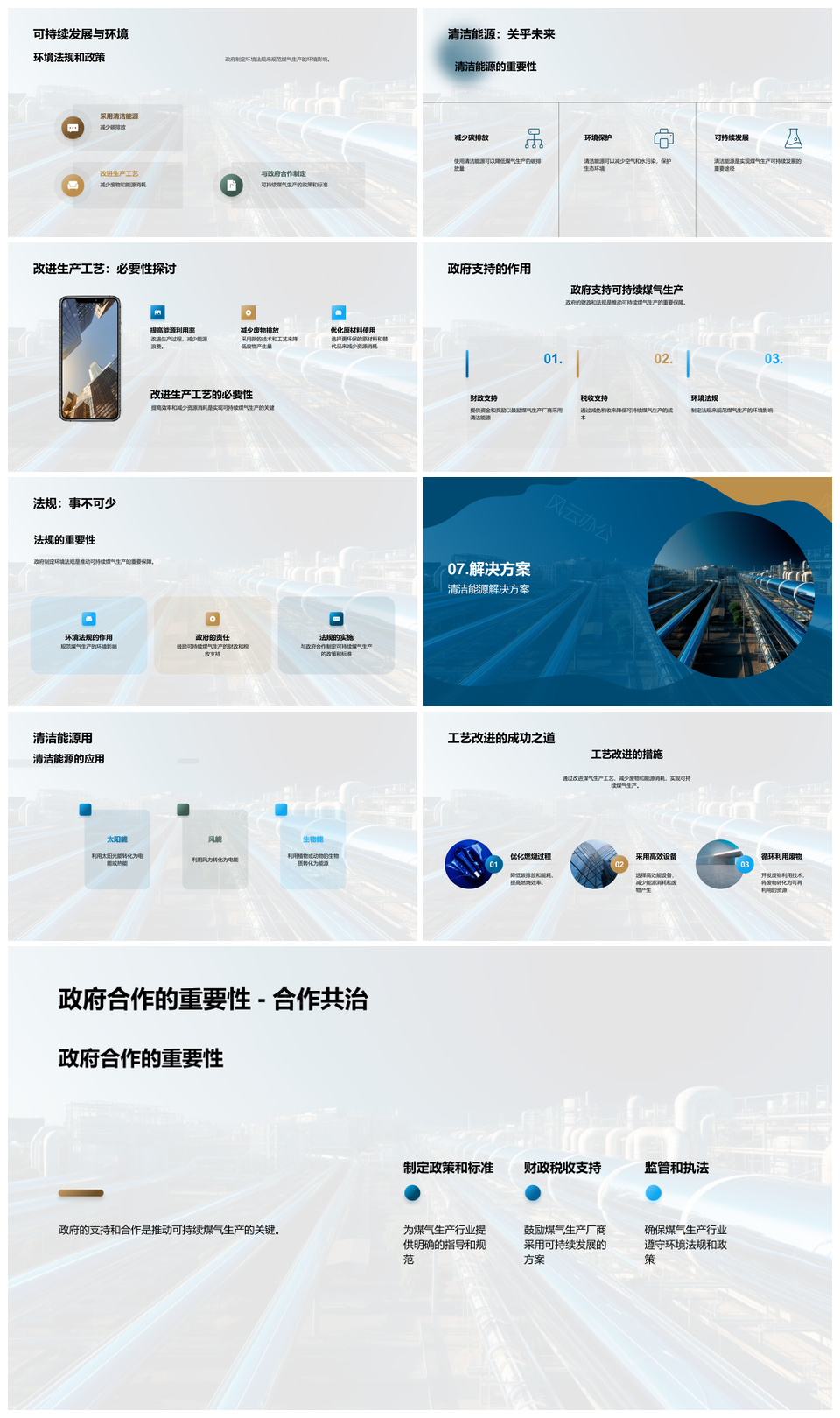 煤气生产绿色转型减排工艺清洁能源方案PPT模板推荐
