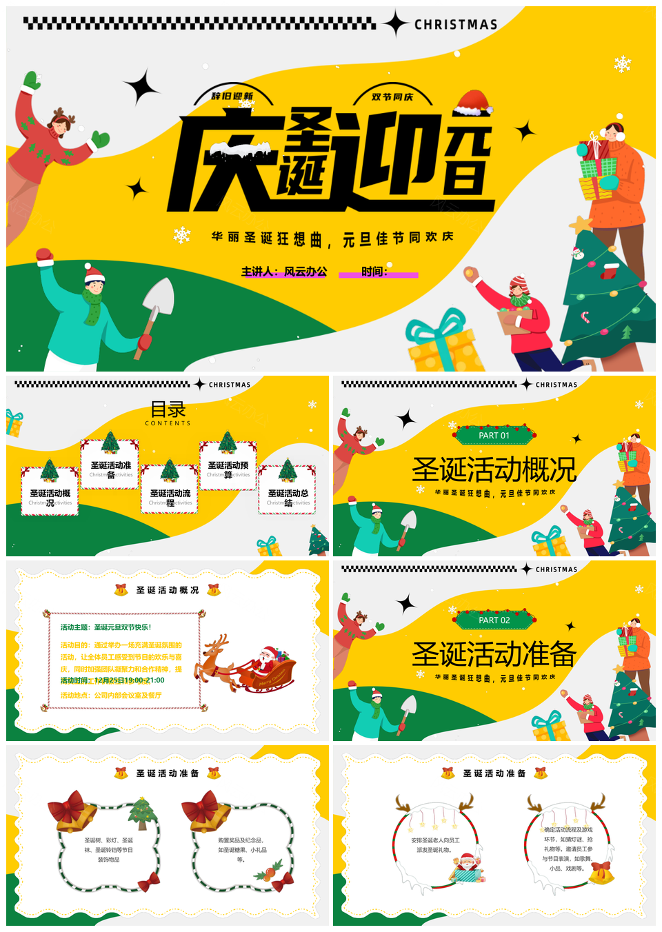 这是一张黄绿卡通圣诞元旦双旦2024龙年公司活动策划PPT模板,包含黄绿、卡通、圣诞、元旦、双旦、2024、龙年、公司、活动、策划等主题内容,也可用作黄绿卡通圣诞元旦、卡通圣诞元旦双旦、圣诞元旦双旦2024、元旦双旦2024龙年、双旦2024龙年公司、2024龙年公司活动、龙年公司活动策划、黄绿卡通圣诞、卡通圣诞元旦、圣诞元旦双旦、元旦双旦2024、双旦2024龙年、2024龙年公司、龙年公司活动、公司活动策划等PPT场景使用。 风云办公提供的黄绿卡通圣诞元旦双旦2024龙年公司活动策划PPT模板,下载格式为pptx,一共20页,作品中文字及图均可以修改和编辑,图片更改请在作品中右键图片并更换,文字修改请直接点击文字进行修改。