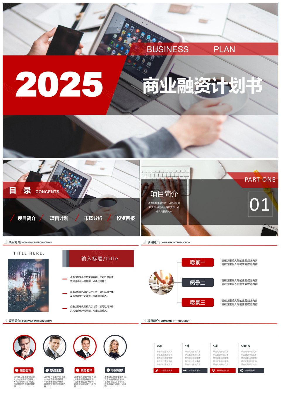 2025红色商业计划书简约路演报告创业项目融资PPT模板
