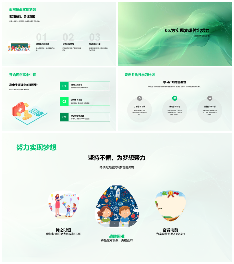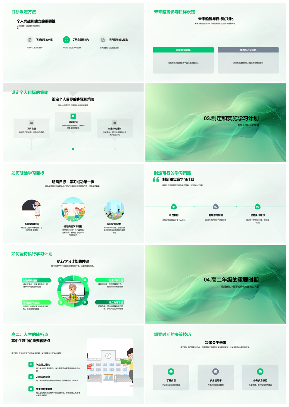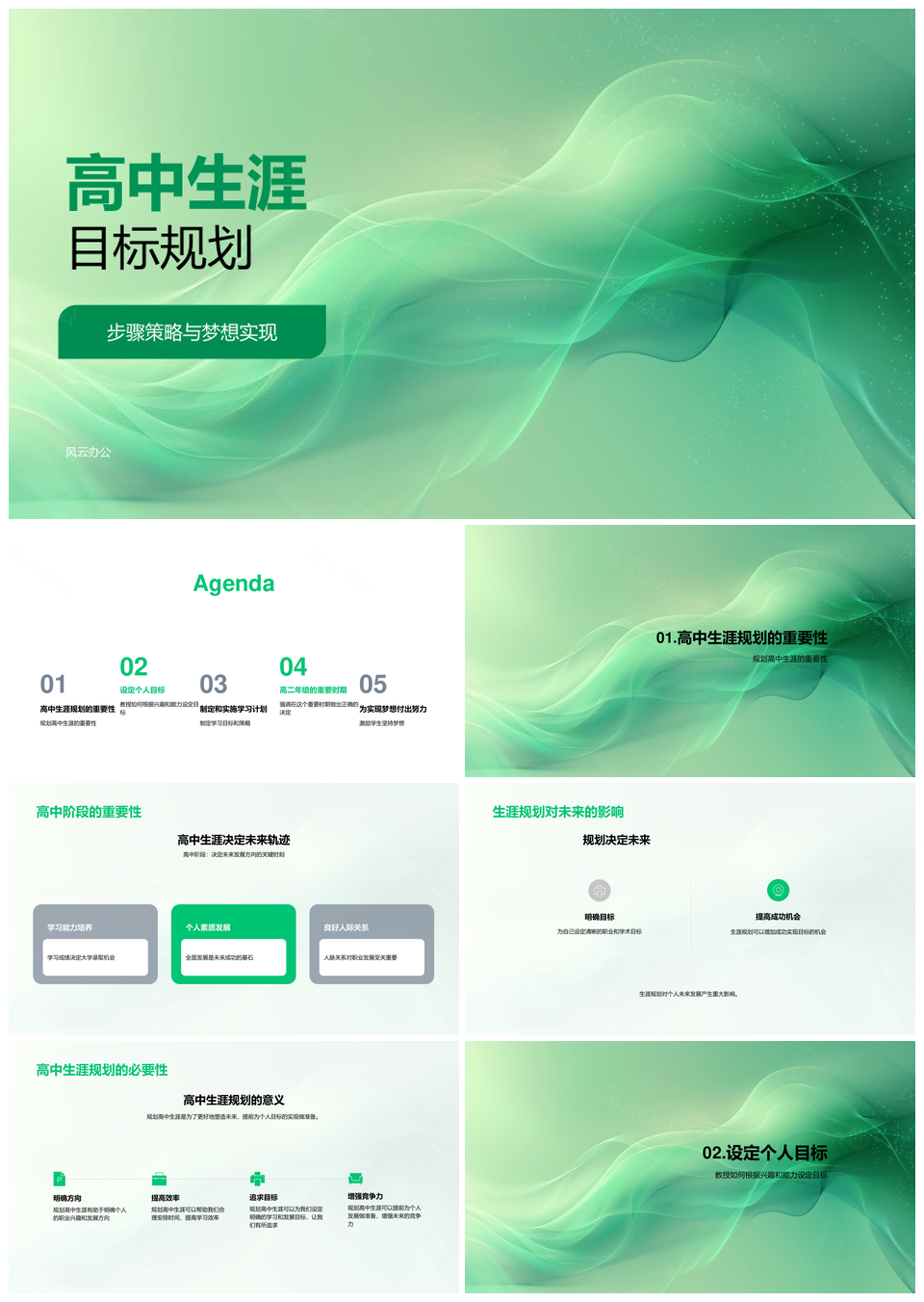 风云办公提供的高中生涯目标规划策略助圆梦未来PPT模板,下载格式为pptx,一共23页,作品中文字及图均可以修改和编辑,图片更改请在作品中右键图片并更换,文字修改请直接点击文字进行修改。