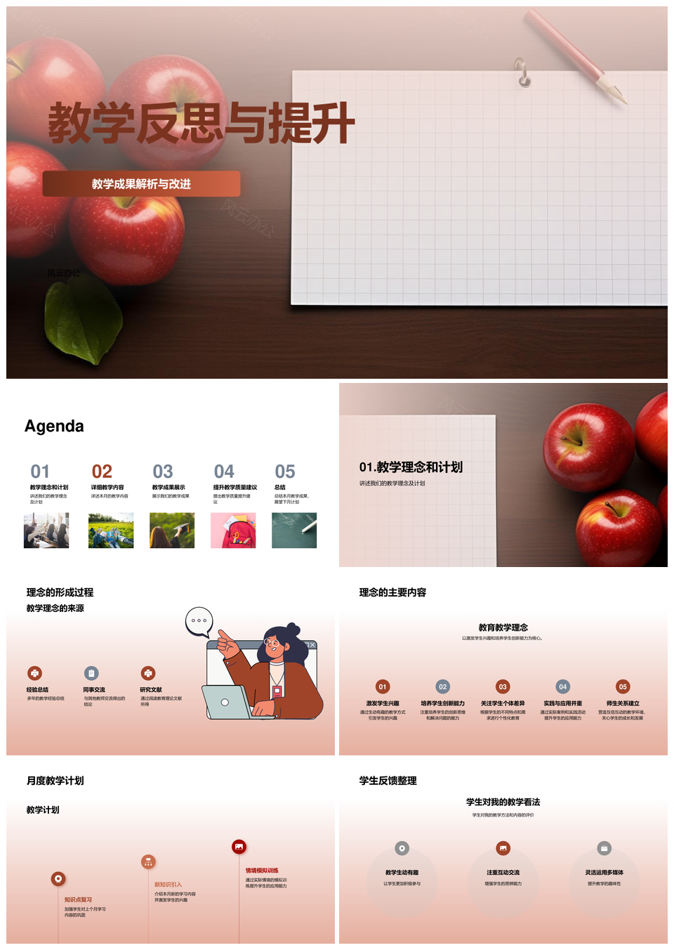 风云办公提供的教学反思融理念方法促成果计划提升PPT模板,下载格式为pptx,一共24页,作品中文字及图均可以修改和编辑,图片更改请在作品中右键图片并更换,文字修改请直接点击文字进行修改。