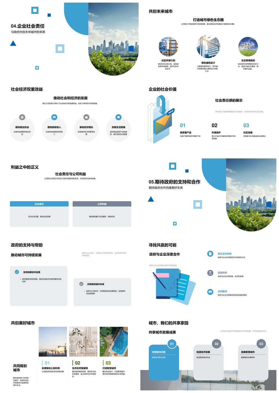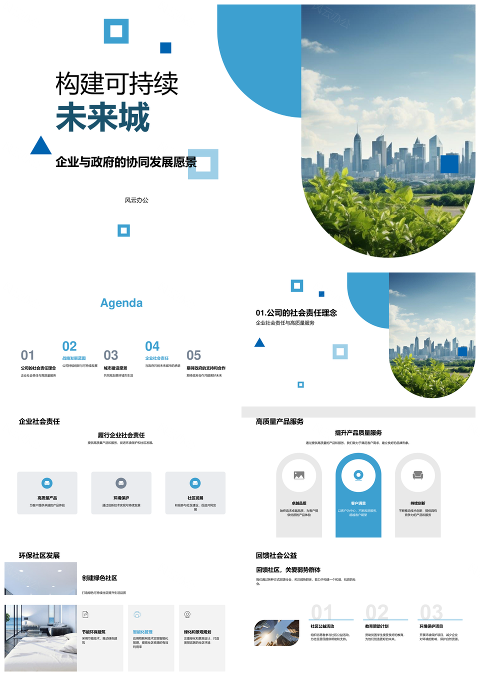 风云办公提供的共建责任高质环保创新可持续未来城PPT模板,下载格式为pptx,一共28页,作品中文字及图均可以修改和编辑,图片更改请在作品中右键图片并更换,文字修改请直接点击文字进行修改。