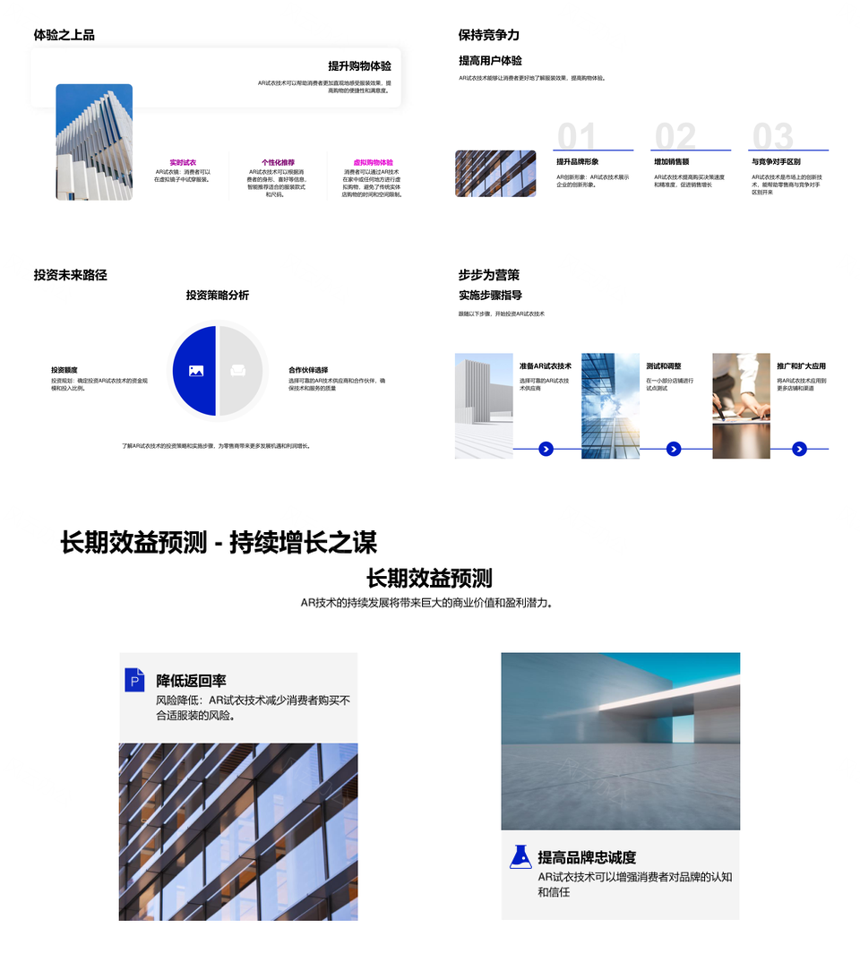 这是一张AR试衣技术零售应用市场前景投资策略报告PPT模板,包含AR试衣技术、零售应用、市场前景、投资策略、报告等主题内容,也可用作AR试衣技术零售应用市场前景、AR试衣技术应用市场前景投资策略、应用市场前景投资策略报告、零售应用市场前景投资策略、AR试衣技术零售应用市场、零售应用市场前景投资、应用市场前景投资策略、市场前景投资策略报告、AR试衣技术零售应用、零售应用市场前景、应用市场前景投资、市场前景投资策略、投资策略报告、AR试衣技术零售、AR试衣技术应用等PPT场景使用。 风云办公提供的AR试衣技术零售应用市场前景投资策略报告PPT模板,下载格式为pptx,一共33页,作品中文字及图均可以修改和编辑,图片更改请在作品中右键图片并更换,文字修改请直接点击文字进行修改。