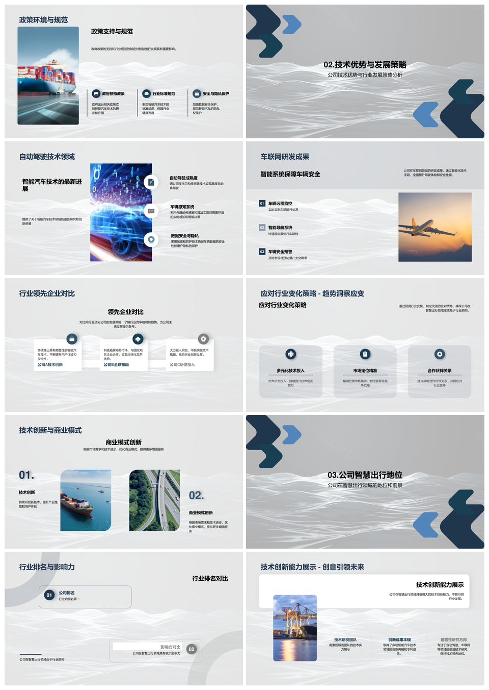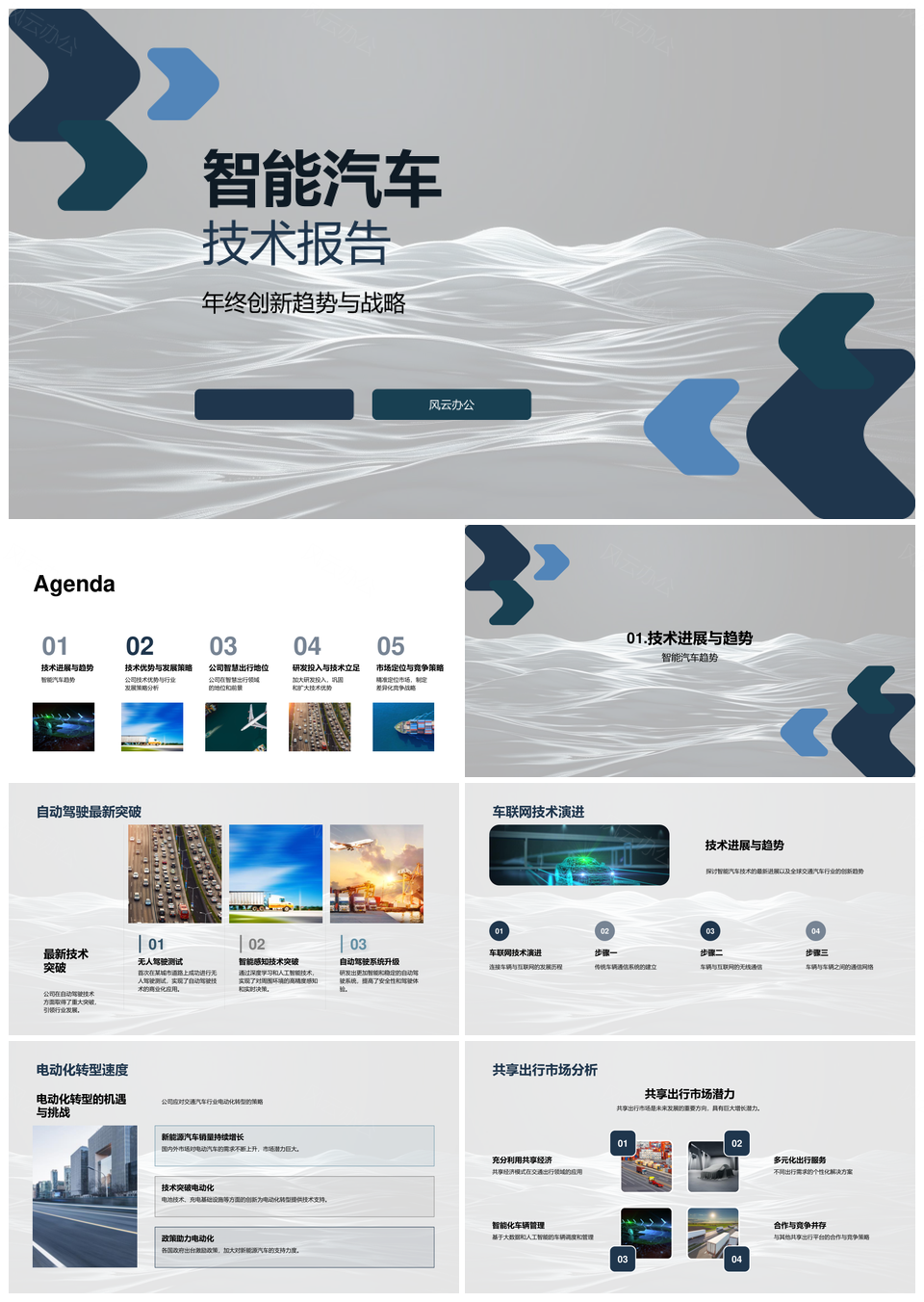 这是一张智能汽车技术自动驾驶车联网电动化共享出行研发市场定位PPT模板,包含智能汽车技术、自动驾驶、车联网、电动化、共享出行、研发、市场定位等主题内容,也可用作智能汽车技术自动驾驶车联网、技术自动驾驶车联网电动化、自动驾驶车联网电动化共享出行、车联网电动化共享出行研发、电动化共享出行研发市场定位、智能汽车技术自动驾驶、技术自动驾驶车联网、自动驾驶车联网电动化、车联网电动化共享出行、电动化共享出行研发、共享出行研发市场定位、智能汽车技术、自动驾驶车联网、车联网电动化、共享出行研发等PPT场景使用。 风云办公提供的智能汽车技术自动驾驶车联网电动化共享出行研发市场定位PPT模板,下载格式为pptx,一共29页,作品中文字及图均可以修改和编辑,图片更改请在作品中右键图片并更换,文字修改请直接点击文字进行修改。