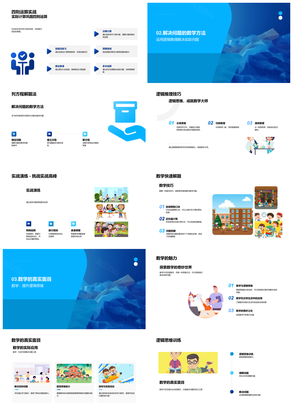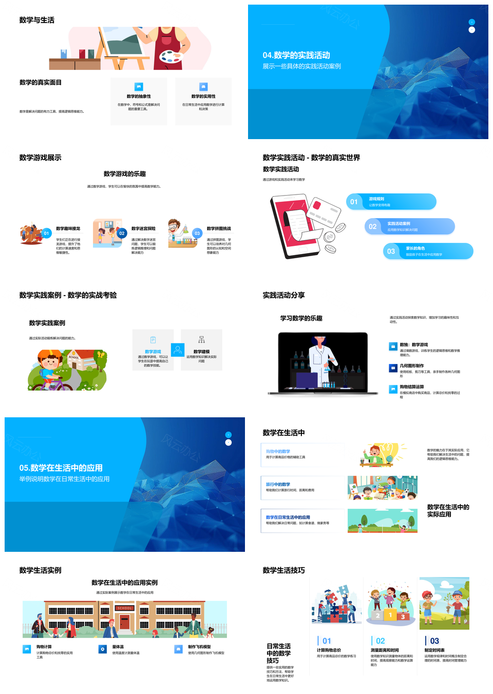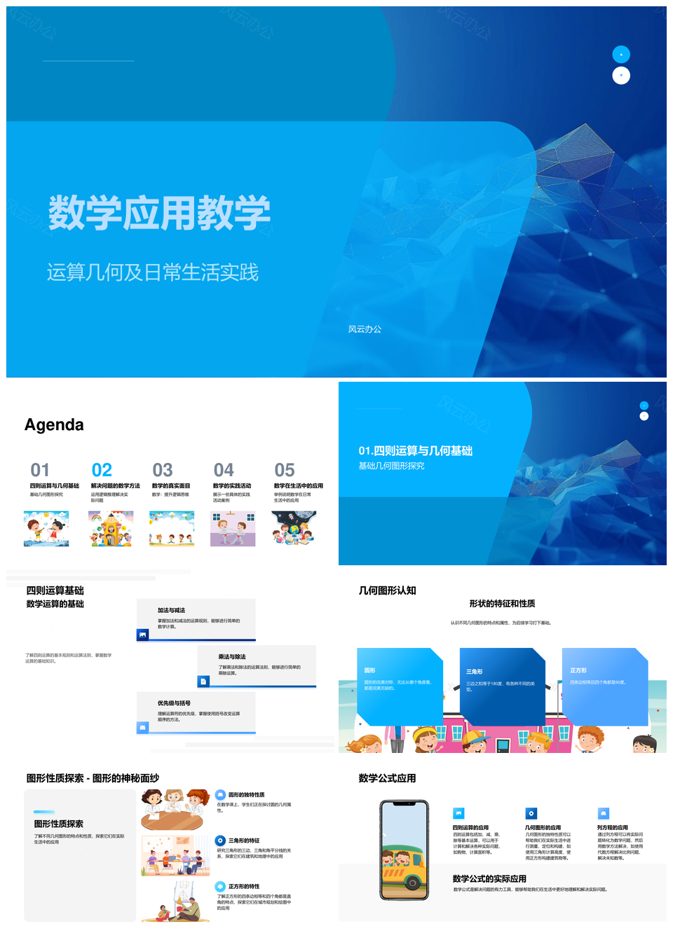 风云办公提供的数学应用实践运算几何逻辑推理生活PPT模板,下载格式为pptx,一共29页,作品中文字及图均可以修改和编辑,图片更改请在作品中右键图片并更换,文字修改请直接点击文字进行修改。