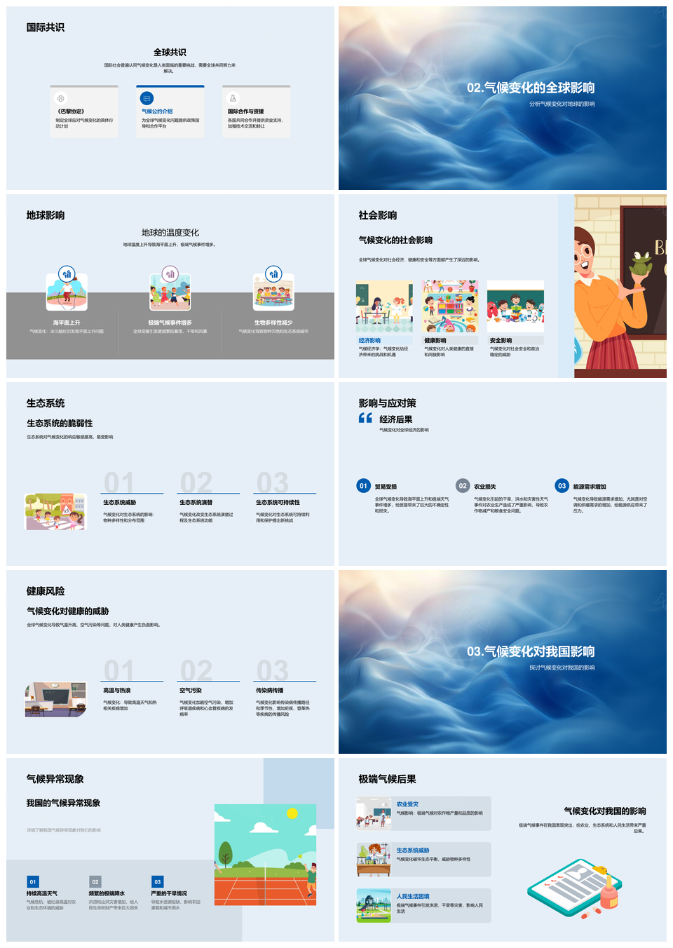全球气候变化教学影响应对我国生态国际合作PPT模板推荐