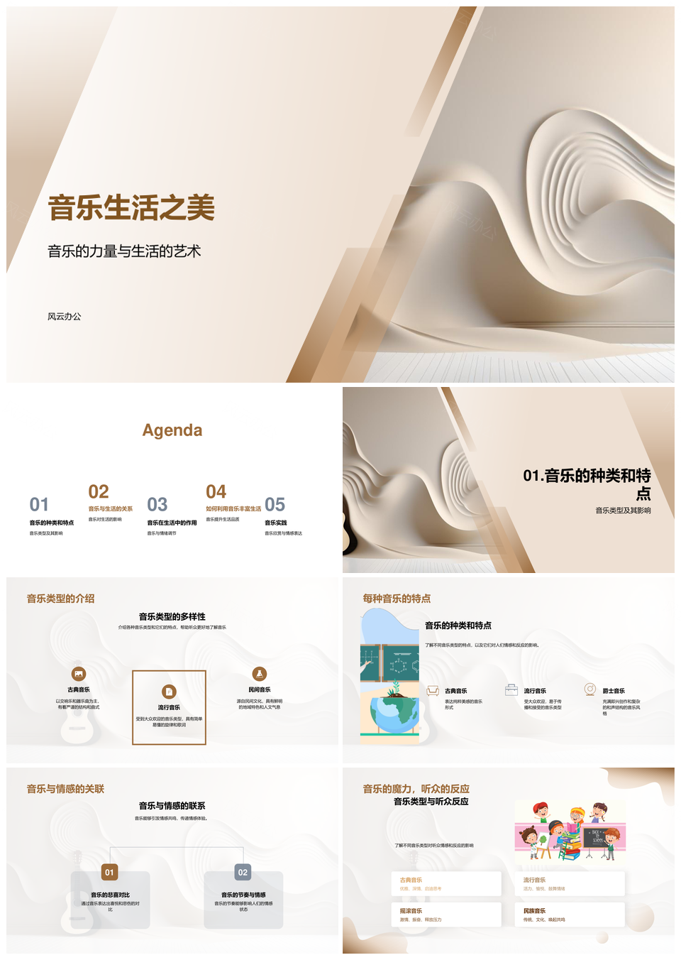 风云办公提供的音乐情感美韵多元乐动生活PPT模板,下载格式为pptx,一共23页,作品中文字及图均可以修改和编辑,图片更改请在作品中右键图片并更换,文字修改请直接点击文字进行修改。