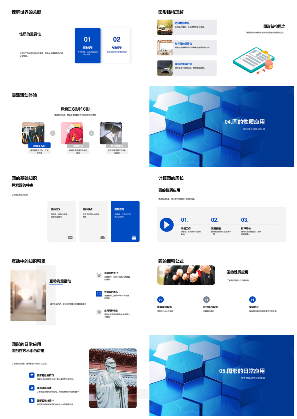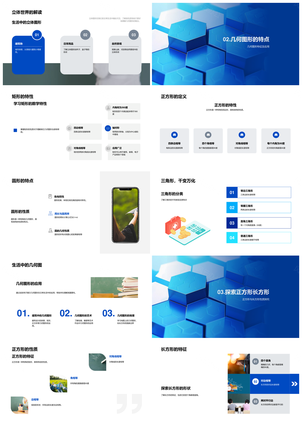 平面立体几何图形及多边圆三角性质探索PPT模板推荐