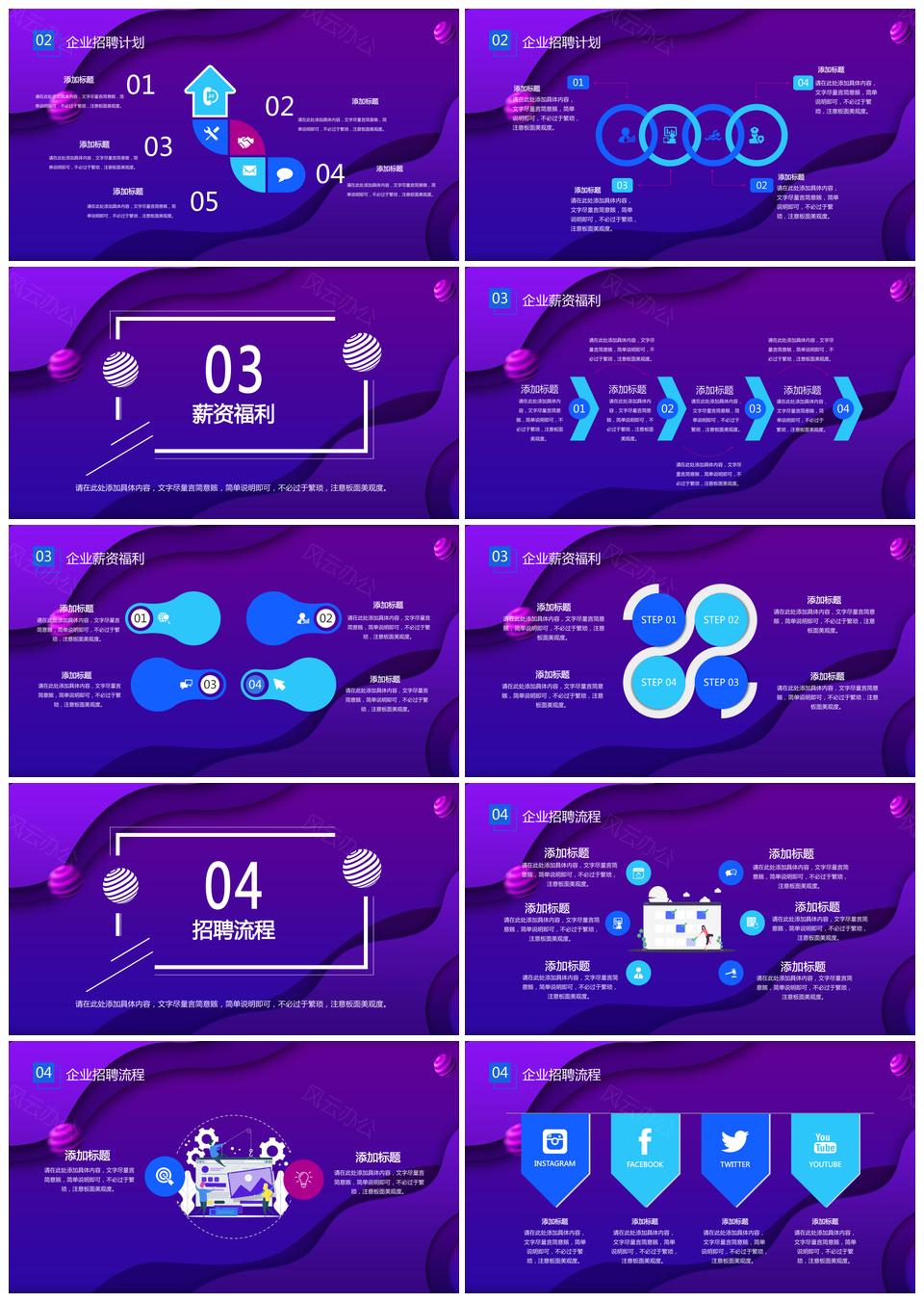 蓝色框架完整校园招聘宣讲企业招聘PPT模板