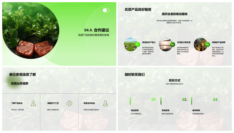 这是一张肉制品副产品加工销售营养口感发展趋势PPT模板,包含肉制品、副产品、加工、销售、营养、口感、发展趋势等主题内容,也可用作肉制品副产品加工销售、肉制品副产品营养口感、副产品加工销售营养、肉制品加工营养口感、加工销售营养口感、副产品营养口感趋势、发展趋势营养加工销售、肉制品营养口感发展、加工销售发展趋势、营养口感发展趋势、肉制品发展趋势、副产品加工销售、营养口感趋势、加工销售趋势、发展趋势营养等PPT场景使用。 风云办公提供的肉制品副产品加工销售营养口感发展趋势PPT模板,下载格式为pptx,一共22页,作品中文字及图均可以修改和编辑,图片更改请在作品中右键图片并更换,文字修改请直接点击文字进行修改。