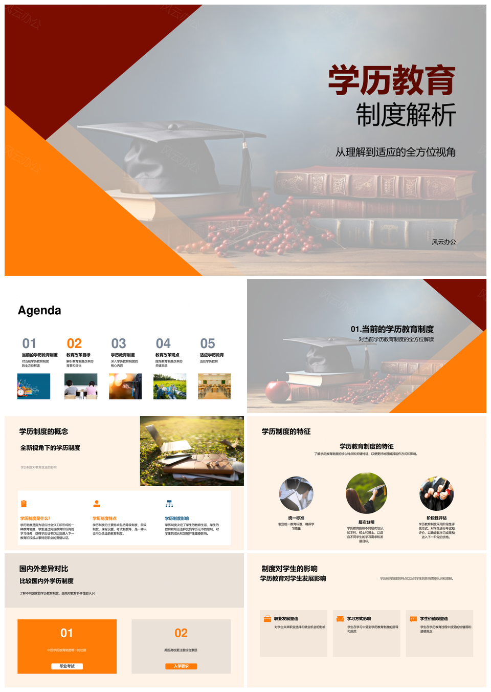 风云办公提供的学历教育制度改革毕业帽解析PPT模板,下载格式为pptx,一共28页,作品中文字及图均可以修改和编辑,图片更改请在作品中右键图片并更换,文字修改请直接点击文字进行修改。