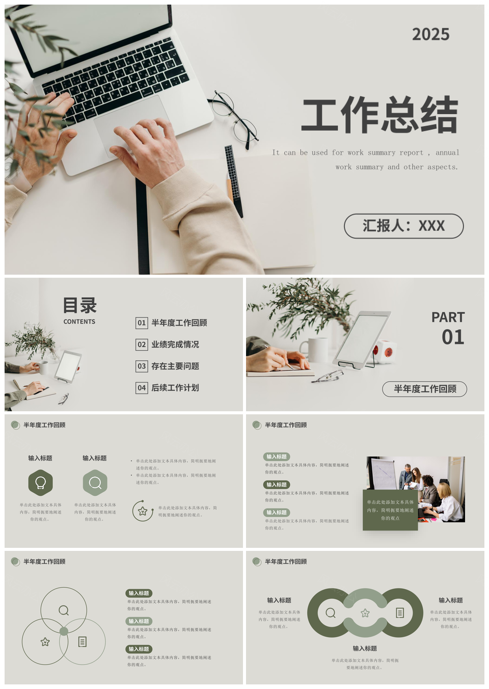 2025绿色小清新简约商务总结报告新年计划通用动态PPT模板
