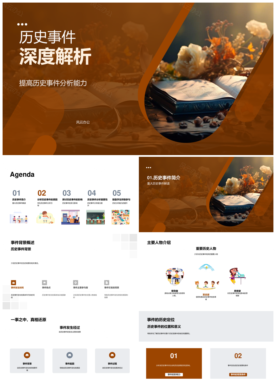风云办公提供的高中历史事件解析教学提升分析能力PPT模板,下载格式为pptx,一共33页,作品中文字及图均可以修改和编辑,图片更改请在作品中右键图片并更换,文字修改请直接点击文字进行修改。