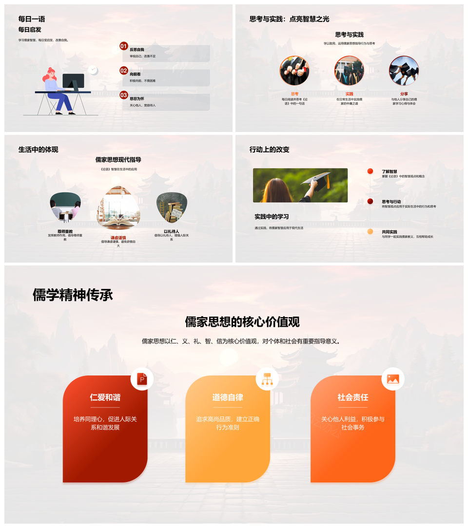 儒家思想现代生活中庸仁义礼智信论语PPT模板