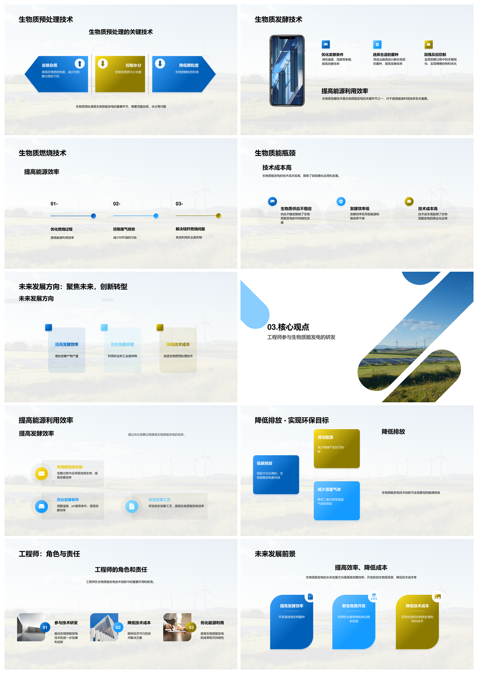 生物质能发电技术创新预处理发酵燃烧降本PPT模板推荐