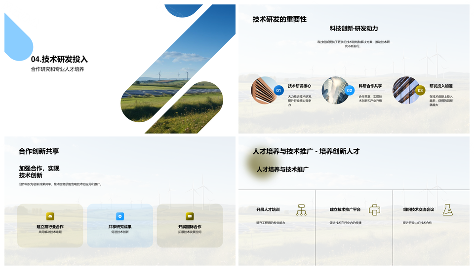 这是一张生物质能发电技术创新预处理发酵燃烧降本PPT模板,包含生物质能、发电技术、创新、预处理、发酵、燃烧、降本等主题内容,也可用作生物质能发电技术创新预处理、生物质能发电技术预处理发酵、生物质能预处理发酵燃烧、发电技术创新预处理发酵、发电技术预处理发酵燃烧、预处理发酵燃烧降本、生物质能发电技术创新、生物质能发电技术降本、生物质能发酵燃烧降本、发电技术创新燃烧降本、预处理发酵燃烧、发酵燃烧降本、发电技术降本、预处理降本、燃烧降本等PPT场景使用。 风云办公提供的生物质能发电技术创新预处理发酵燃烧降本PPT模板,下载格式为pptx,一共22页,作品中文字及图均可以修改和编辑,图片更改请在作品中右键图片并更换,文字修改请直接点击文字进行修改。